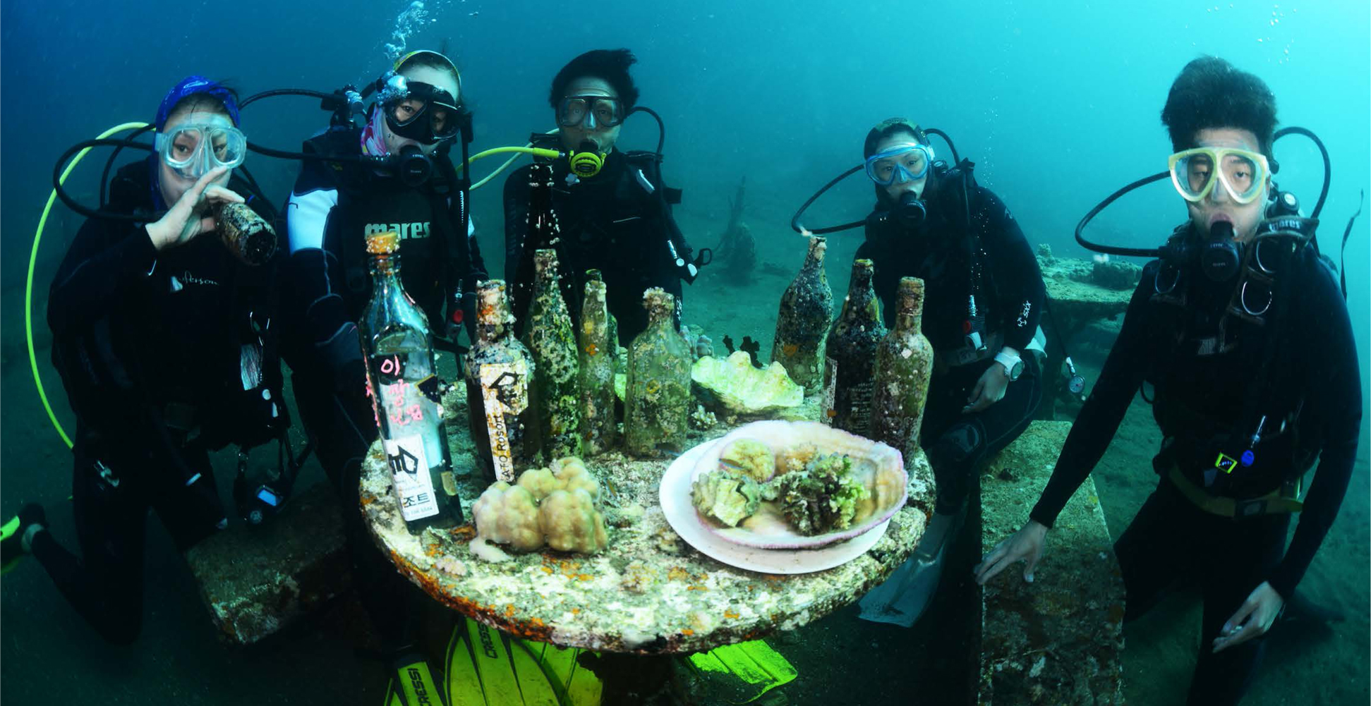 비스타마 포인트의 수중레스토랑에서 모인 다이버들