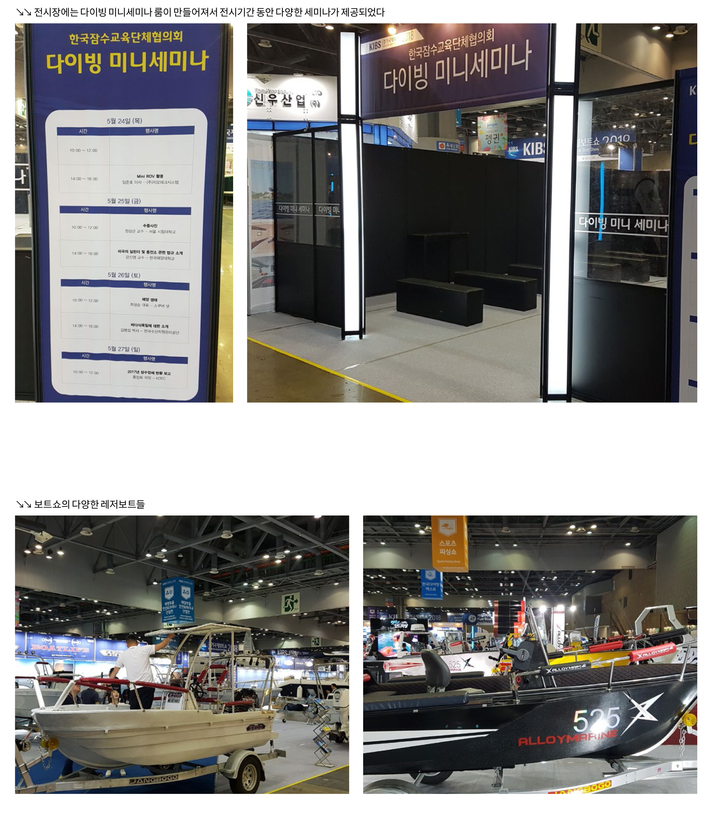 한국다이빙엑스포는 전시장에서 정상근 교수의 수중사진 특별전을 개최하는 것은 물론 전시장 내에 미니세미나 룸을 만들고 전시 기간 동안 매일 스쿠버 다이빙 관련 세미나를 개최하여 다이버들의 참가를 독려하였다. 스쿠버넷에서는 정상근 교수의 수중사진세미나, 최성순 대표의 해양생태 세미나가 이곳에서 열렸다. 그 외에도 (주)지오테크시스템 임준호 이사의 Mini Rov 활용, 한국해양대학교 강신영 교수의 미국의 실린더 및 충전소 관련 법규 소개, 한국수산자원관리공단 김병섭 박사의 바다식목일에 대한 소개 그리고 KDEC 홍장화 의장의 2017년 잠수업체 현황 보고 등이 발표되면서 관심있는 다이버들의 불러 모았다.