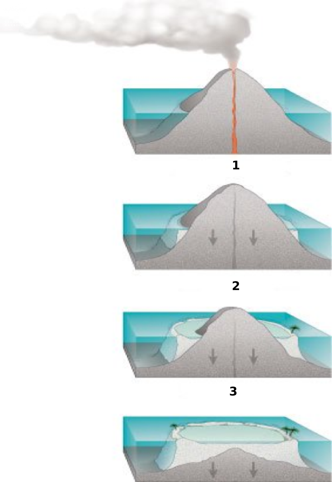 찰스 다윈은 산호초의 이러한 타입을 지질학적 시간의 경과에 따라 설명했는데 해양성 화산이 생기면 처음에 그 주위로 거초가 형성되고, 점차 화산섬이 가라앉으면서 보초가 되었다가 마지막에 섬이 완전히 가라앉아서 사라지면 산호초만 남아서 환초가 된다고 했다.