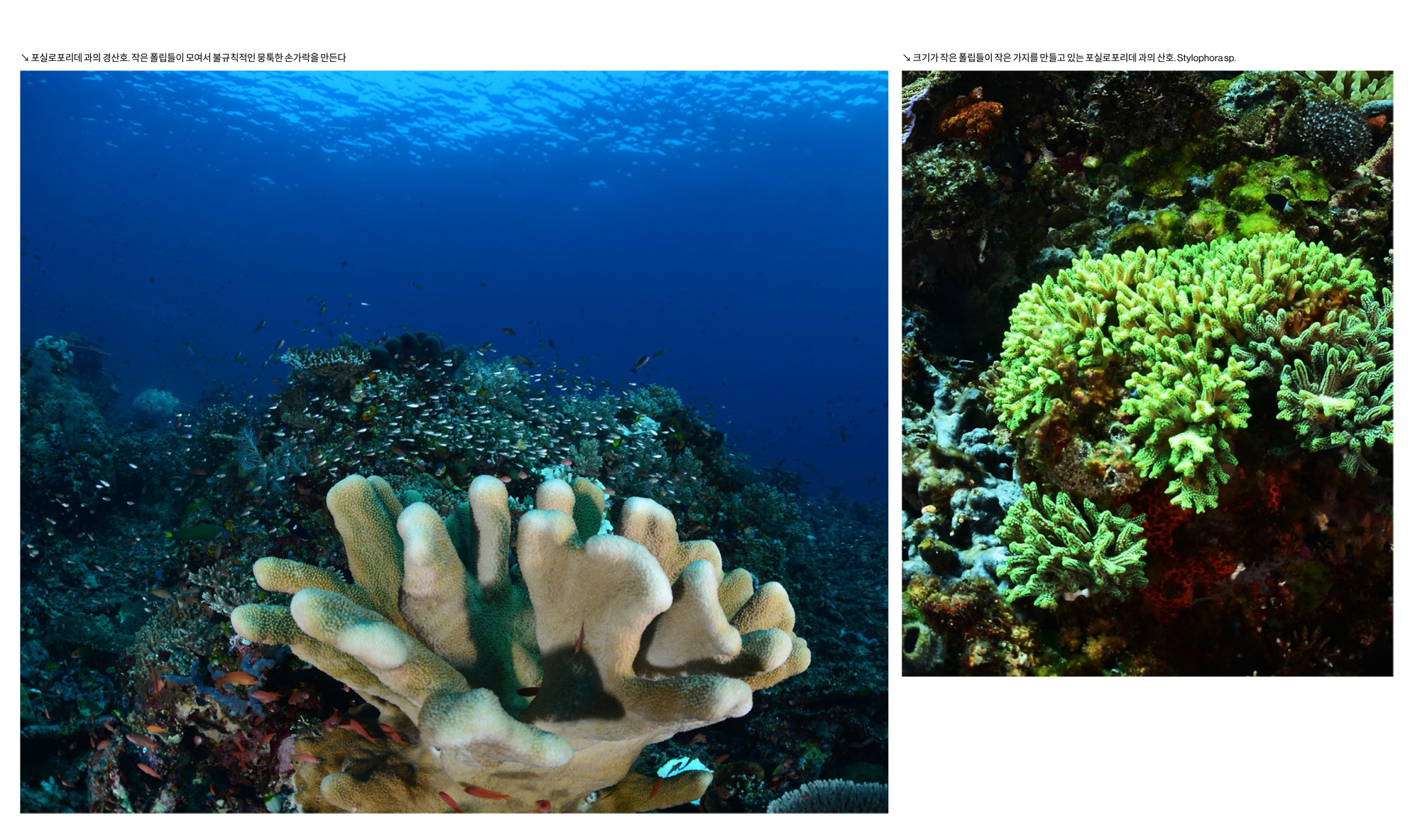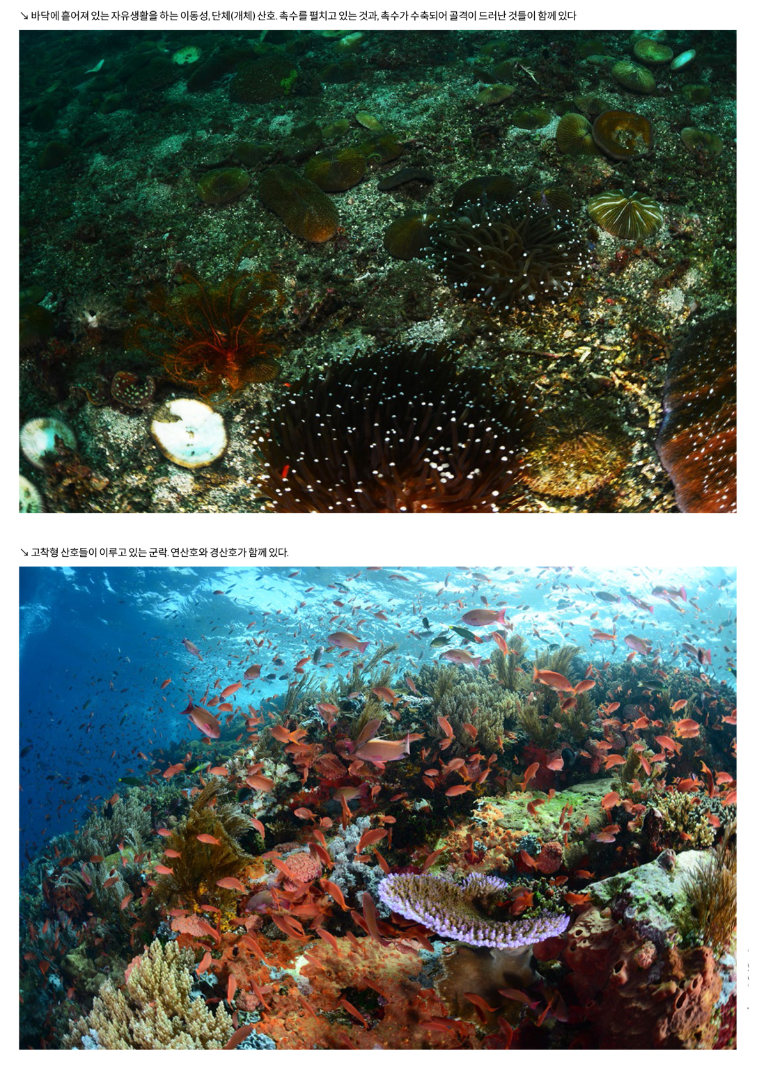 해양생태 스페셜티의 하나로서 산호식별 과정에서는 산호가 무엇이고, 어떻게 생존하고 번식하는지, 그리고 우리가 흔하게 볼 수 있는 산호들을 과 수준에서 구별할 수 있는 방법을 배우게 된다. 여기서는 간단하게 그 내용을 요약해서 살펴보기로 하자.