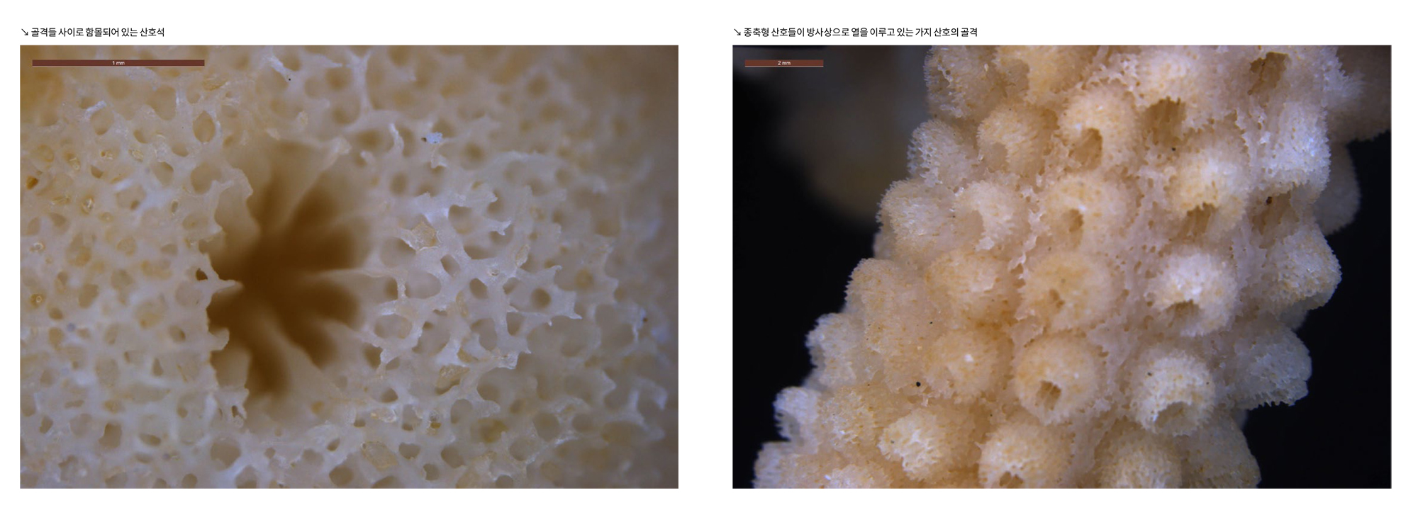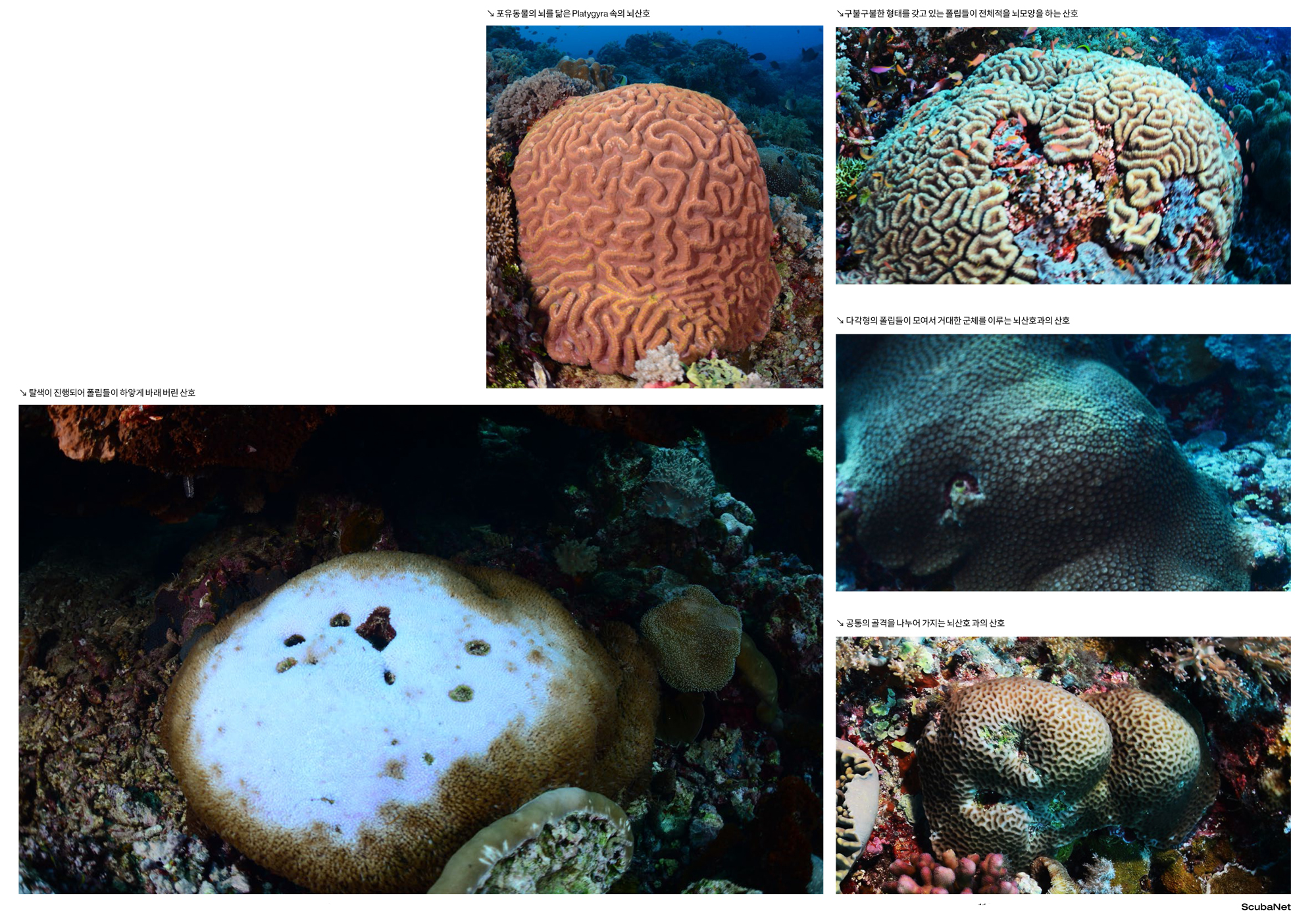 산호를 구별하는데 도움이 되는 산호석의 타입을 설명한 그림