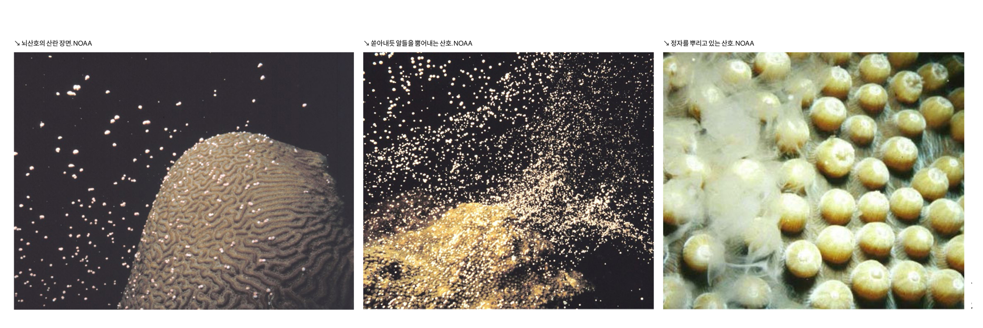 산호의 집단산란전 세계 산호초에서 일년에 한번 정도, 보름을 즈음해 산호의 집단 산란이 일어난다. 모든 산호들이 동시에 정자와 알을 뿌려 산란하고, 수중에서 뒤섞여 수정이 일어난다. 이 이벤트는 밤에 일어나며 수백만 개의 흰색, 분홍색 생식세포들이 수면을 향해 일제히 떠오르는 장관을 연출한다. 1980년대 과학자들은 어느 날 밤 대보초에서 수십 종의 산호들이 동시에 산란하는 것을 우연히 발견하였다. 이로 인해 산호 생물학과 생태학의 내용이 달라졌고, 많은 과학자들이 산호 산란을 연구하게 되었다. 이후로 산호의 집단 산란은 전세계에서 보고되고 있지만 아직도 이런 현상을 촉발하는 신호에 대해서는 정확히 알려진 것이 없다.