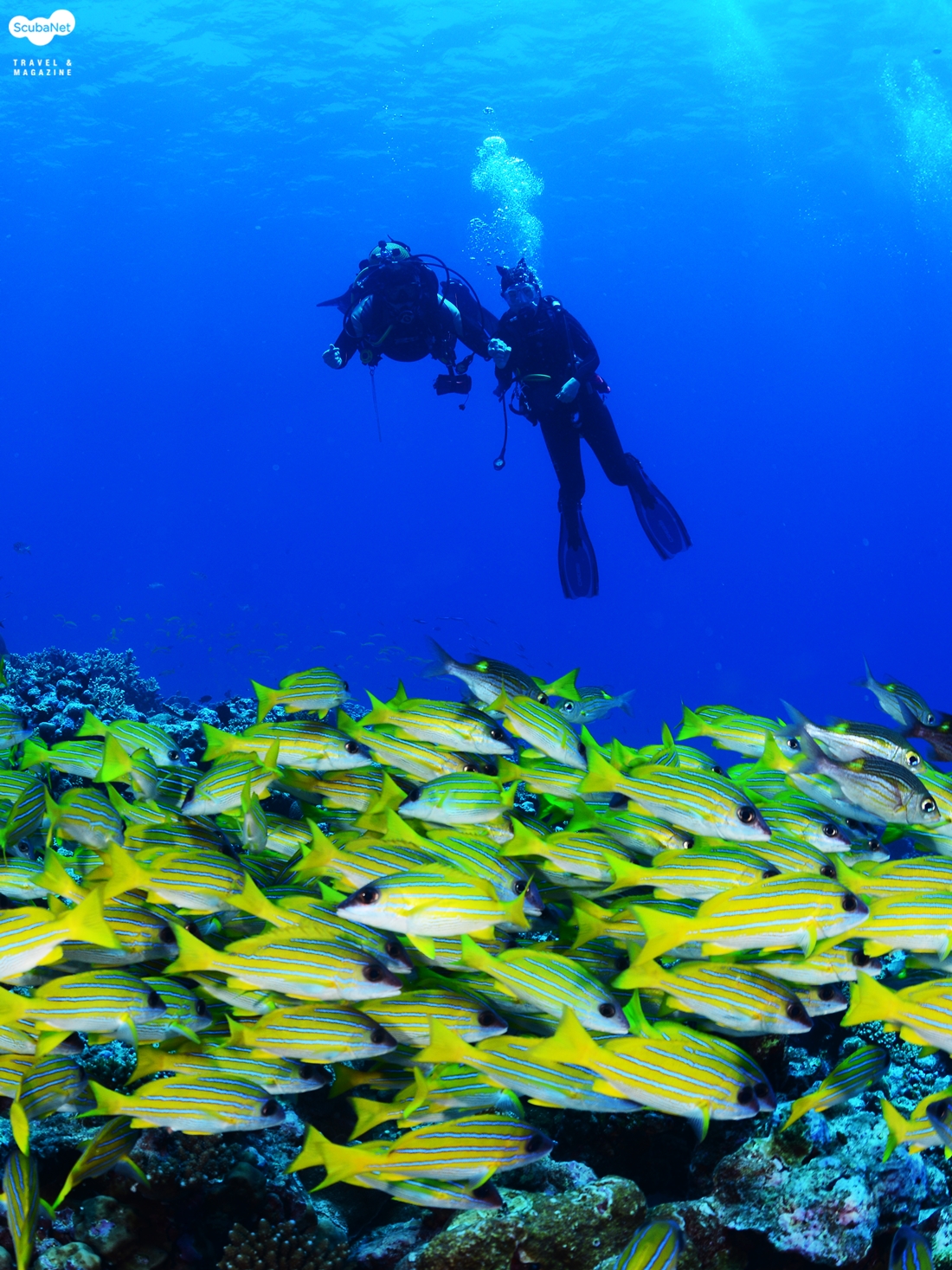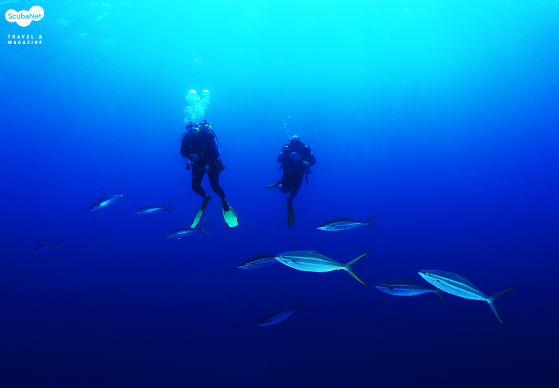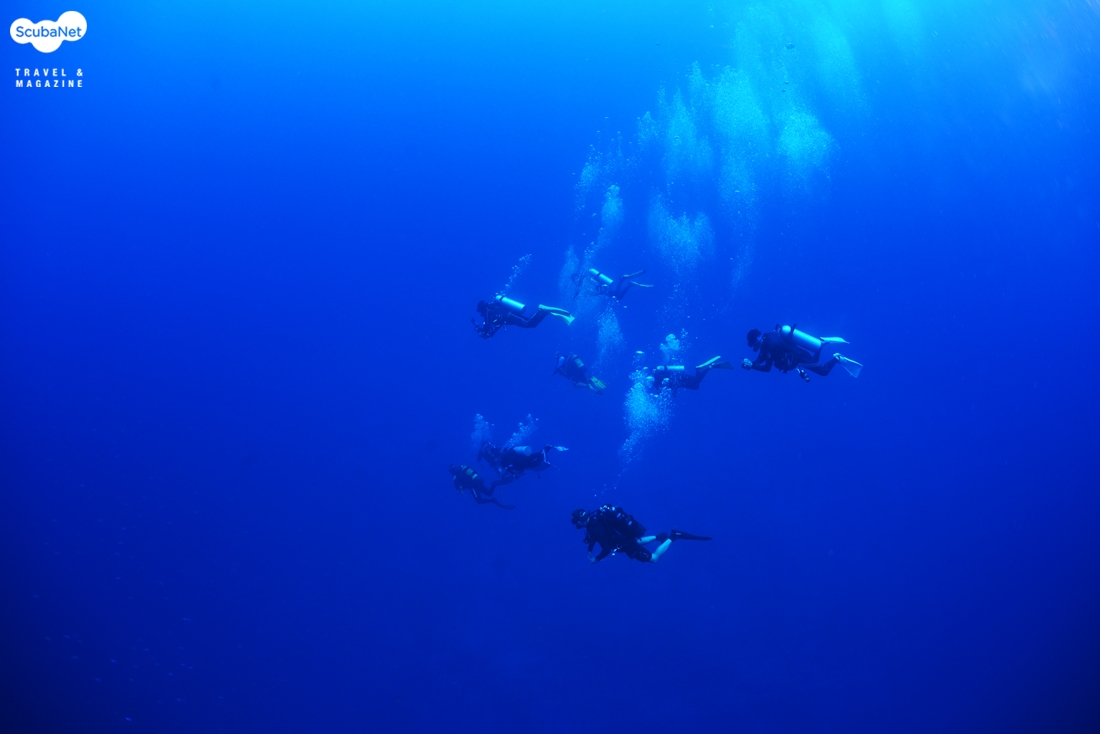 가이드와 함께 다이빙을 진행하는 다이버들