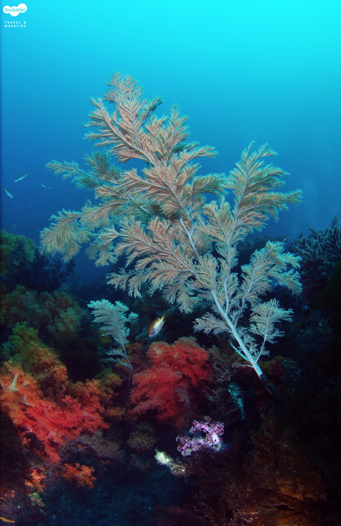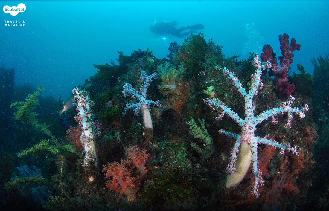 깊은 수심의 가시수지맨드라미 산호 군락카메라 돔포트에 생긴 김서림이 사라지기를 기다리면서 산호 동산을 산책하였는데 거의 반바퀴를 돌 무렵이 되어서야 김서림이 사라졌다. 비로소 해송에 수지맨드라미 산호 등 각종 산호들이 눈에 들어왔다. 수중촬영을 할 수 있게 된 것이다. 다음에는 습기제거제를 하우징에 미리 넣어 두어야 하겠다.