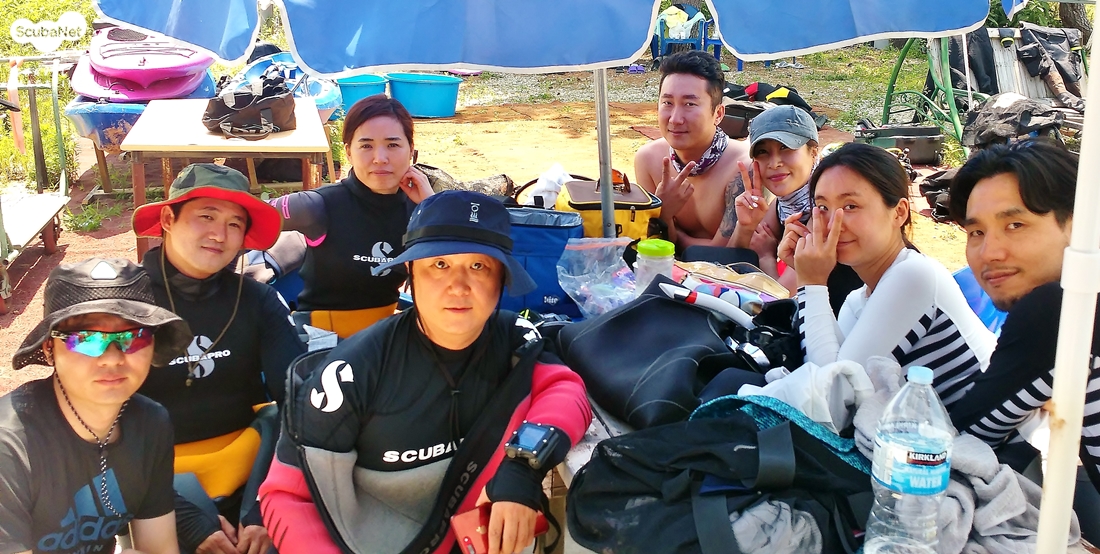 서울은 폭염주위보가 내렸던 날에 시원하게 함께 다이빙 했던 일행들 (이날 처음 만난 분들도 있고, 자주 봤던 분들도 있었다) 첫 다이빙을 준비하면서 먼 바다는 너울이 있다는 말에 조금은 가까운 지역을 선택했다. 최대 수심 12m, 시야는 그렇게 썩 좋지는 않아 4~5m 거리에 있는 버디를 희미하게 알아볼 정도였다. 수온은 18℃, 서울은 폭염주의보가 내렸다는 6월의 주말 끝자락에 우리들은 차가운 물속에서 더운 것도 잊은 채 다이빙을 마쳤다. 우리는 처음 만났지만 아주 오래 전부터 알고 지내던 사람들처럼 그 짧은 다이빙 시간보다 더 긴 다이빙 수다로 수면 휴식 시간을 가졌다.