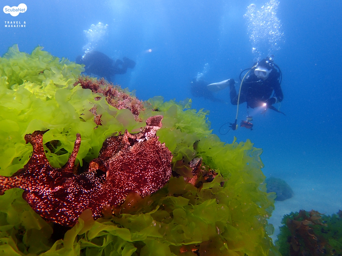 1시간이라는 다이빙 시간이 언제 갔는지도 모른 체, 그렇게 다이빙을 하였지만 아직도 100바의 공기가 여유 있게 남아 있었다. 모두들 시간이 가는 줄도 모르고 다이빙에 열중한다. 요 근래 보기 드물었던 맑은 시야였다. 파란 물속에서 녹색 해조류들은 자신들이 입은 옷의 색깔이 더 예쁘다며 뽐내는 듯했다. 다이버가 지나가면 그 자취에 따라 해조류들은 좌우로 때로는 상하로 하염없이 너울거린다.