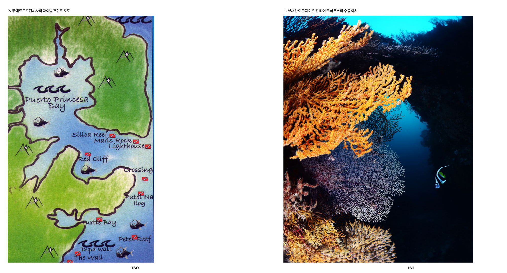 푸에르토 프린세사의 다이빙 포인트필자의 경우 약 20년 전에 투바타하 리브어보드 트립을 나갔다가 폭풍으로 투바타하로 가지 못하고 푸에르토 프린세사 인근에서 다이빙을 한 경험이 있었다. 당시는 파도도 있었기에 시야는 당연히 좋지 않았지만 다이나마이트 어업의 후유증으로 연안에는 성한 산호가 거의 없었다. 그래서 무척 실망했던 기억이 있다. 하지만 최근 투바타하 다이빙을 하면서 투바타하 역시 예전에 비해 산호가 많이 회복된 것을 경험했기에 푸에르토 프린세사의 환경도 예전에 비해서는 나아졌을 것이란 기대는 있었다. 물론 푸에르토 프린세사의 다이빙 사이트들이 좋았다면 필리핀의 다른 지역과 마찬가지로 다이버들이 즐겨 찾았을 텐데 그렇지 않았던 것을 보면 수중 환경이 상대적으로 떨어진다는 것은 누구나 짐작할 수 있을 것이다. 하지만 직접 경험하고 재평가하고 싶었다.