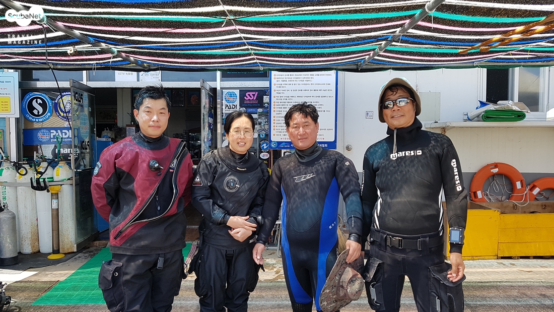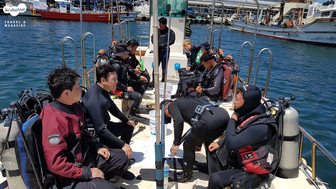 첫 다이빙을 마치고 돌아온 다이버들은 좋은 시야와 따뜻한 수온에 만족한 모습들이었다. 드라이슈트 다이버는 박상용 대표의 부인인 최인숙 씨 밖에 없었다. 그만큼 여름철 수면 근처의 수온이 많이 올랐고, 냉수대의 수온도 그리 낮지 않았던 것이었다. 마침 수리 때문에 드라이슈트가 없었기에 다행이라고 생각하며 두번째 다이빙부터 합류하기 위해 장비를 세팅하였다.