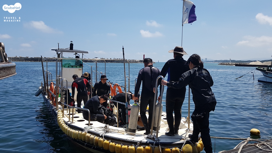 사천항에서 출항을 준비하는 해원리조트의 다이빙 전용선