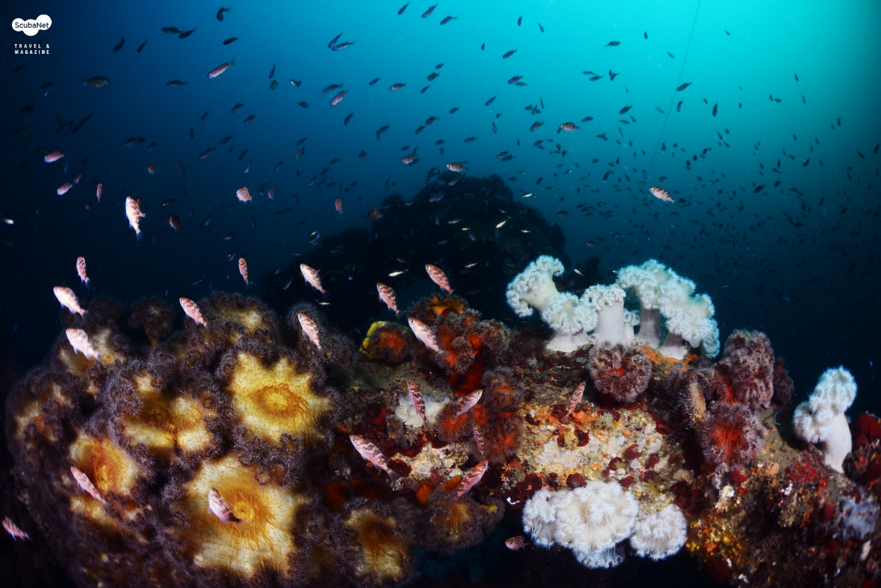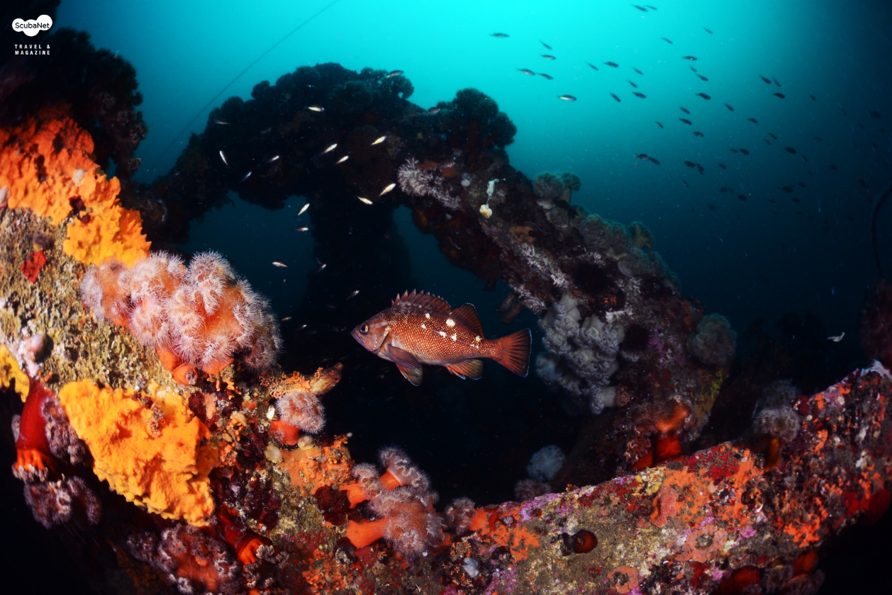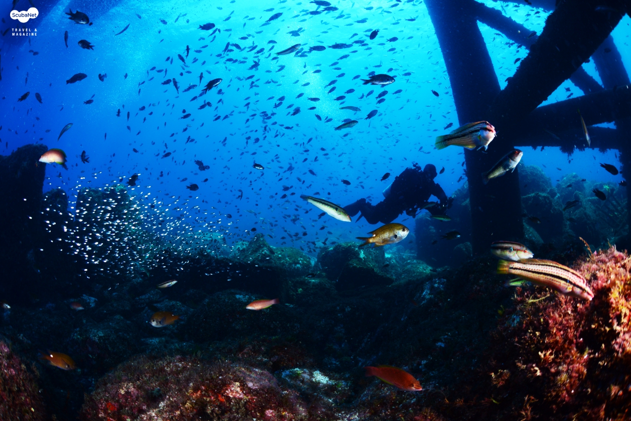 구산항 인근에는 수많은 인공어초들이 투하되어 있기에 좌표가 확인된 곳들이면 어디를 들어가도 부착생물들과 풍부한 정착성 어류들을 볼 수 있다고 한다. 첫날 오후에 입수한 어초도 수심 36m 바닥에서 30m 높이까지 쌓여 있는 정육면체 어초들이었는데 섬유세닐말미잘, 부채뿔산호, 해면 등이 잘 부착되어 있었고, 조피볼락과 탁자볼락 등이 보였으며 불볼락 치어들도 무리를 이루고 있었다. 기온이 40℃를 육박하던 때라 표층의 수온은 29℃까지 올랐지만 수심 30m의 수온은 11℃에 불과할 정도로 서늘했다. 드라이슈트의 목씰을 교체하기 위해 맡겼다가 찾지 못하여 5mm 투피스와 3mm 베스트의 조합으로 다이빙을 했는데 물밖에서 심하게 더웠기에 11℃의 수온은 피서라고 생각할 수 있을 정도로 시원했다. 더위를 식힌다는 생각으로 진행한 다이빙이었지만 만족할 만한 포인트였다.