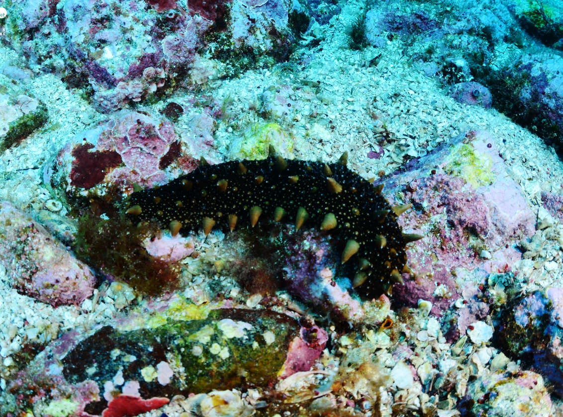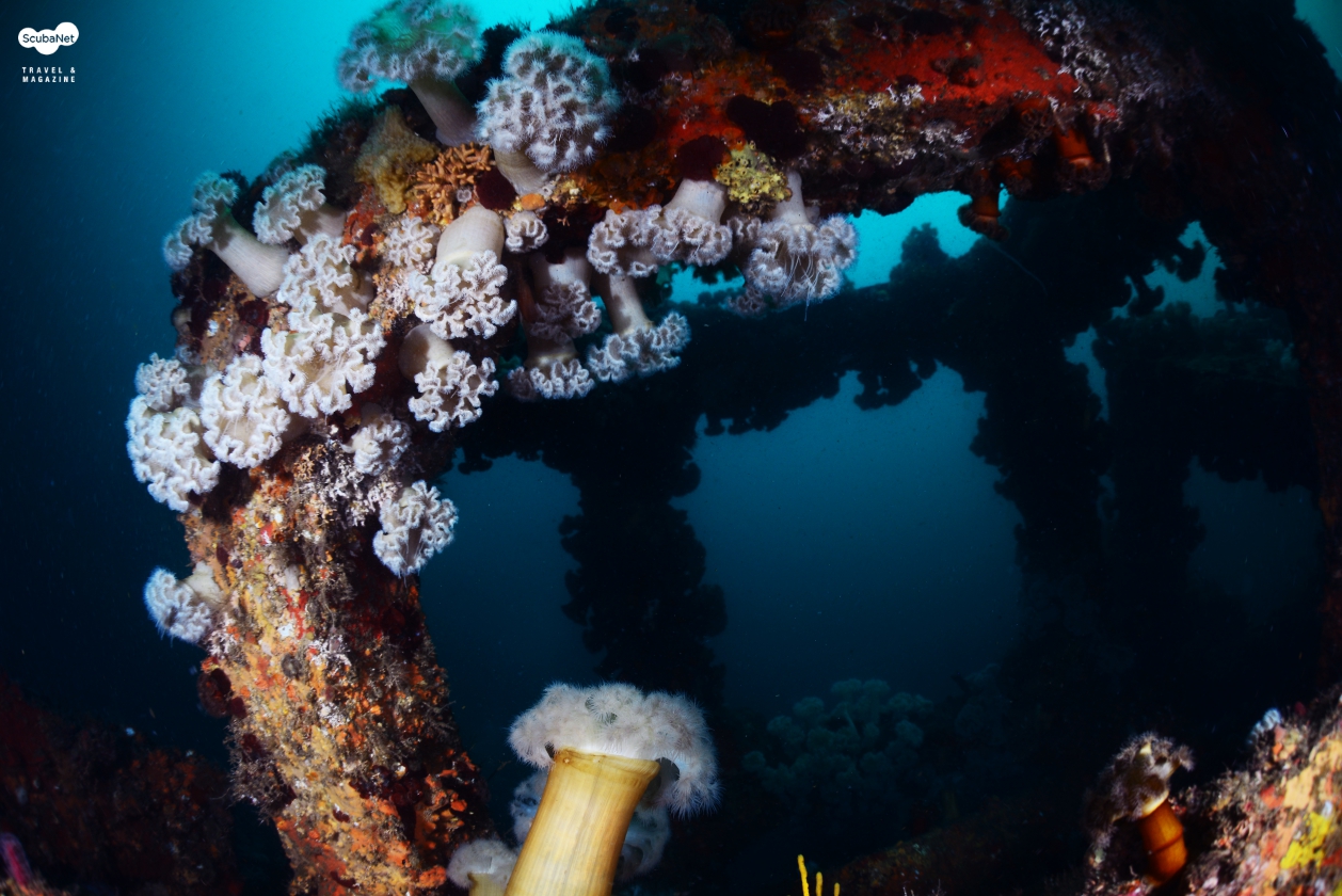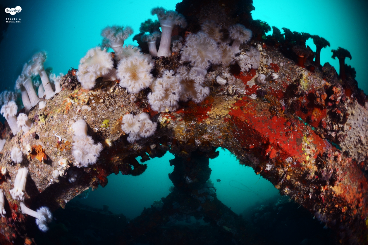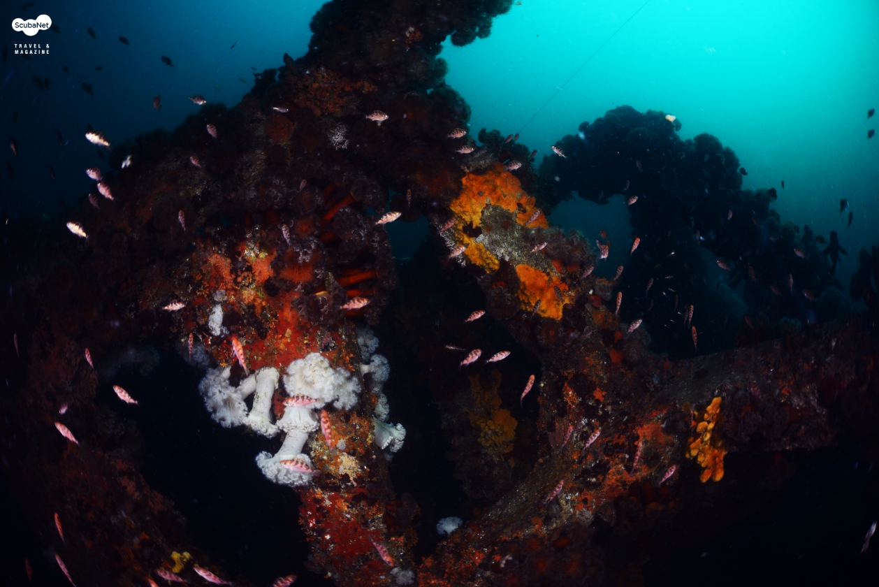 구산항 인근에는 수많은 인공어초들이 투하되어 있기에 좌표가 확인된 곳들이면 어디를 들어가도 부착생물들과 풍부한 정착성 어류들을 볼 수 있다고 한다. 첫날 오후에 입수한 어초도 수심 36m 바닥에서 30m 높이까지 쌓여 있는 정육면체 어초들이었는데 섬유세닐말미잘, 부채뿔산호, 해면 등이 잘 부착되어 있었고, 조피볼락과 탁자볼락 등이 보였으며 불볼락 치어들도 무리를 이루고 있었다. 기온이 40℃를 육박하던 때라 표층의 수온은 29℃까지 올랐지만 수심 30m의 수온은 11℃에 불과할 정도로 서늘했다. 드라이슈트의 목씰을 교체하기 위해 맡겼다가 찾지 못하여 5mm 투피스와 3mm 베스트의 조합으로 다이빙을 했는데 물밖에서 심하게 더웠기에 11℃의 수온은 피서라고 생각할 수 있을 정도로 시원했다. 더위를 식힌다는 생각으로 진행한 다이빙이었지만 만족할 만한 포인트였다.