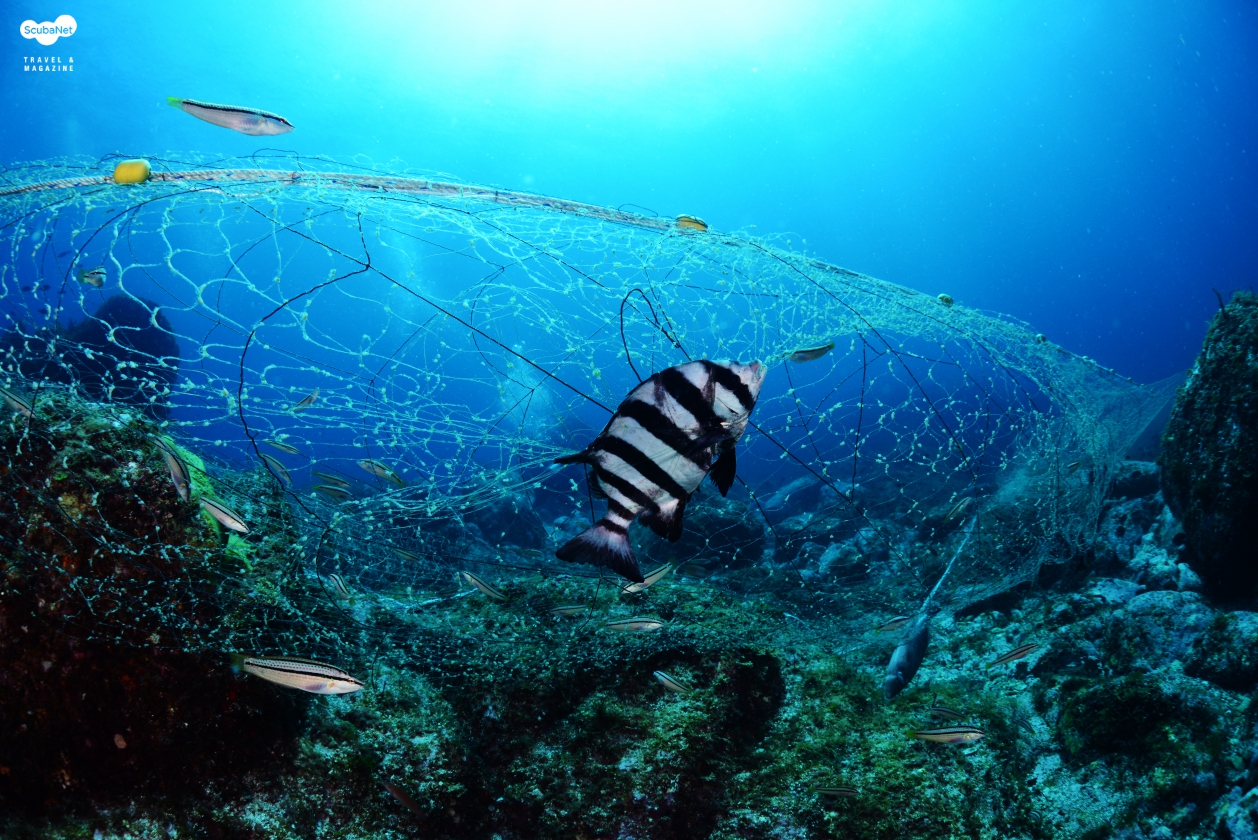 삼중망에 걸려 마지막 숨을 몰아 쉬는 어린 돌돔