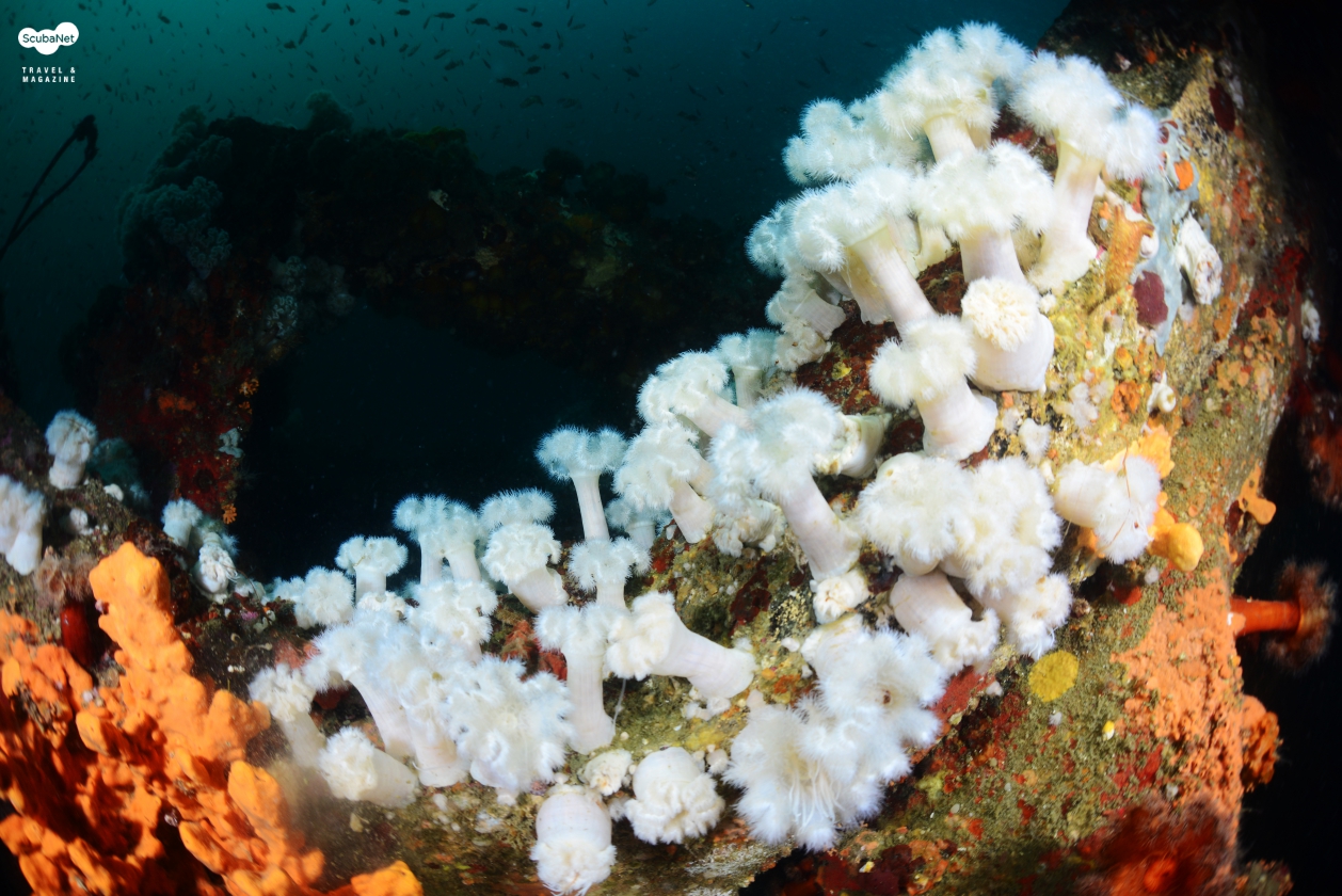 어초에 빽빽하게 붙은 말미잘들은 어초가 자연에 잘 동화되었음을 알려준다