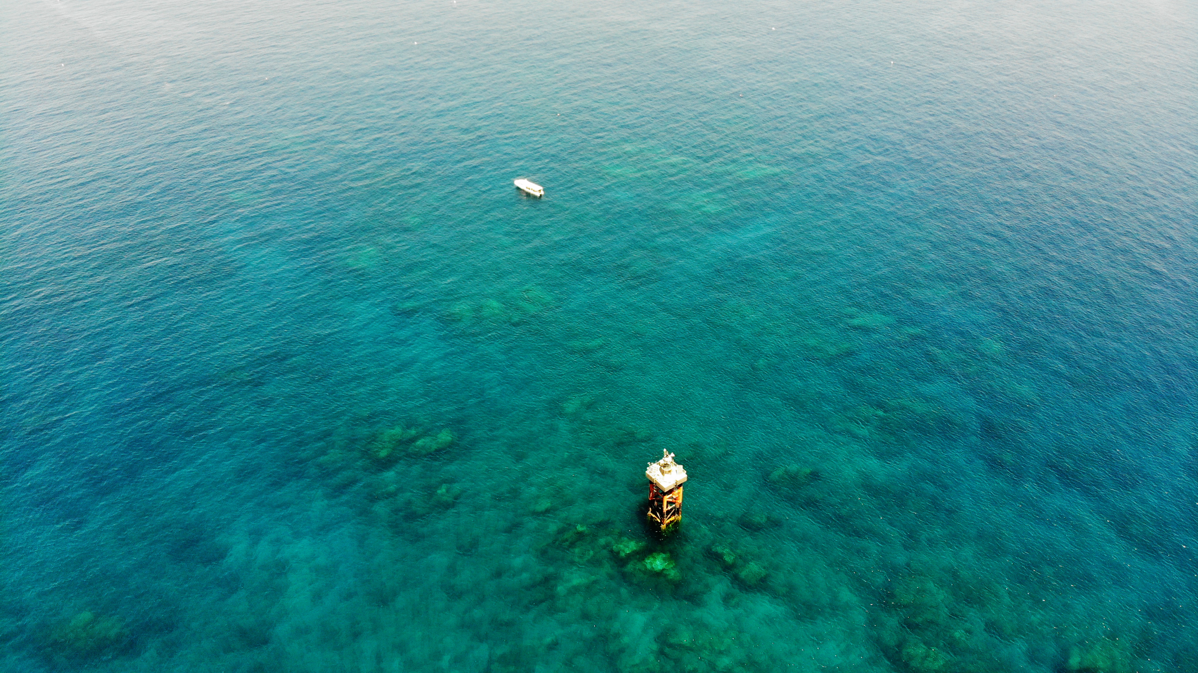 왕돌초 등표와 거북선호. 맑은 시야에 수중의 여들이 다 보인다