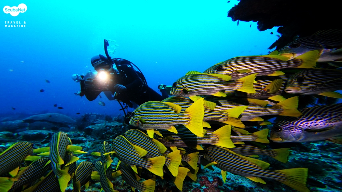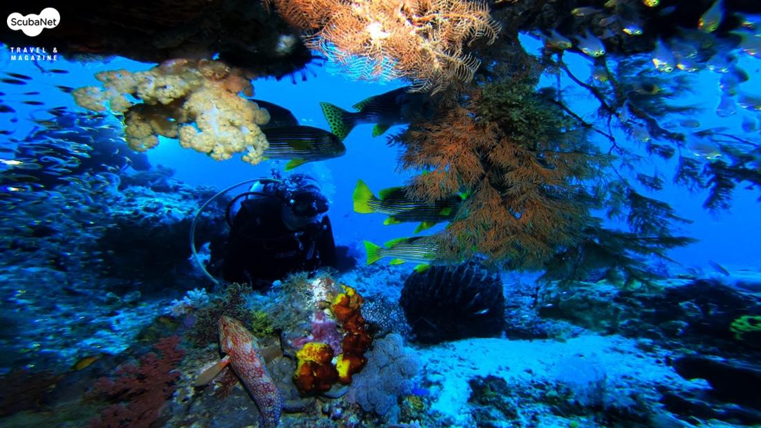 바위 아래에 앉아 있는 우베공 상어의 동영상 촬영 캡쳐 그동안 수중영상 촬영 다이버들에게 인기를 끌었던 씨몬스터 라이트 제조업체인 미래테크에서 최근 고프로용 소형 비디오 라이트 G1200-SL 제품을 출시하였다. 크기가 작으면서도 광량이 밝고, 조사각이 넓어서 고프로용으로 딱 맞는 제품이라는 생각에 즉시 주문하여 사용해보았다. 스쿠버넷에서는 그동안 DSLR 카메라 하우징에 고프로를 붙여서 동영상을 촬영하였다. 백업 개념으로 사용하였기에 라이트까지 장착할 생각은 하지 않았는데 점차 동영상의 활용 범위가 넓어지면서 적당한 비디오 라이트가 있으면 좋겠다는 생각을 갖고 있던 터였다. 마침 고프로를 6로 업그레이드하면서 씨몬스터 제품을 발견하여 장착하였고 지난 7월의 라자암팟 투어 때 사용해보았다. 결과는 매우 만족스러웠다. 그간 비디오 라이트가 없어서 근접 촬영보다는 풍경이나 실루엣 등의 광각 촬영에서 얻은 자료들만으로 편집하였고, 스틸 사진으로 칼라풀한 분위기를 보완하였는데 이젠 동영상 자체에 빛을 줄 수 있게 된 것이었다.