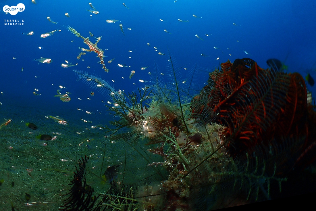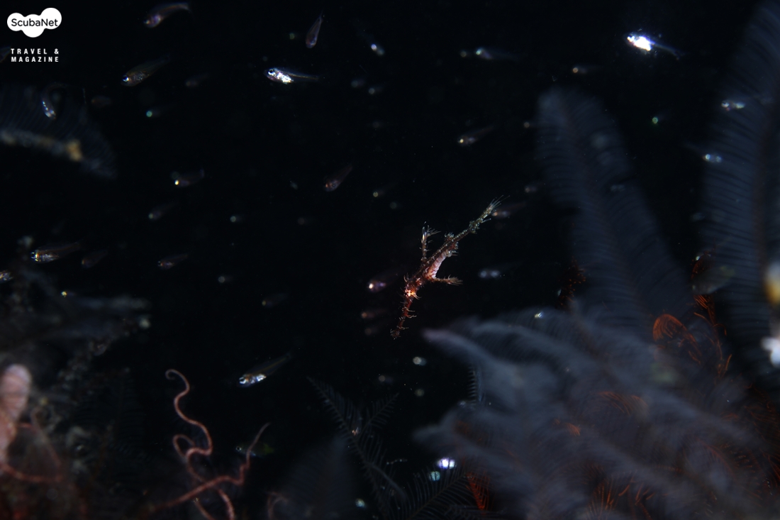 가장 자주 보이는 것 중의 하나는 검은 색계통의 할리퀸 고스트 파이프 피시인데 촬영 후 결과물은 대부분 포토제닉하지 않다 non photogenic는 것을 고려해야 한다.