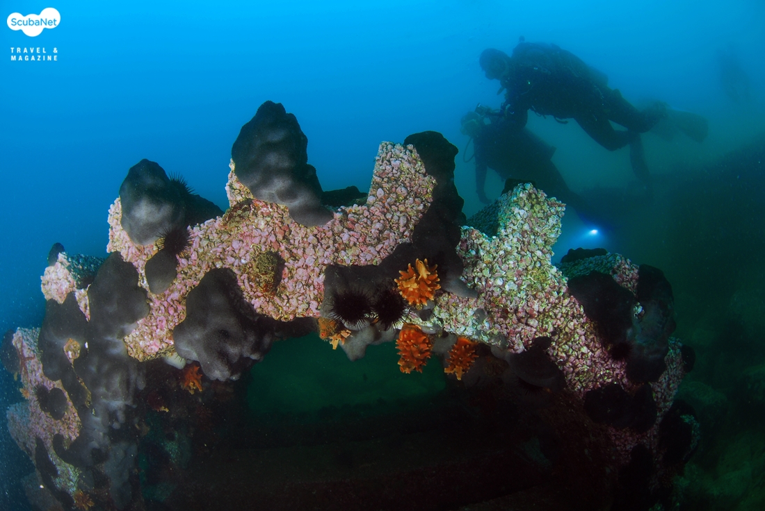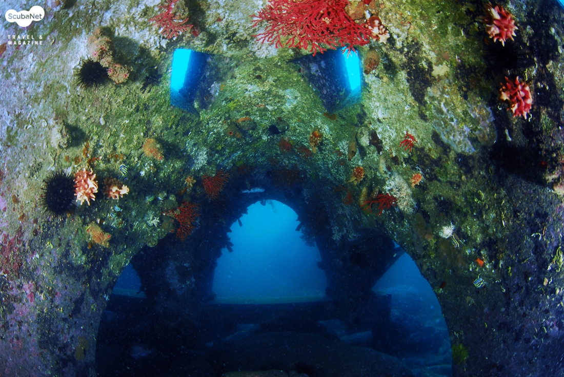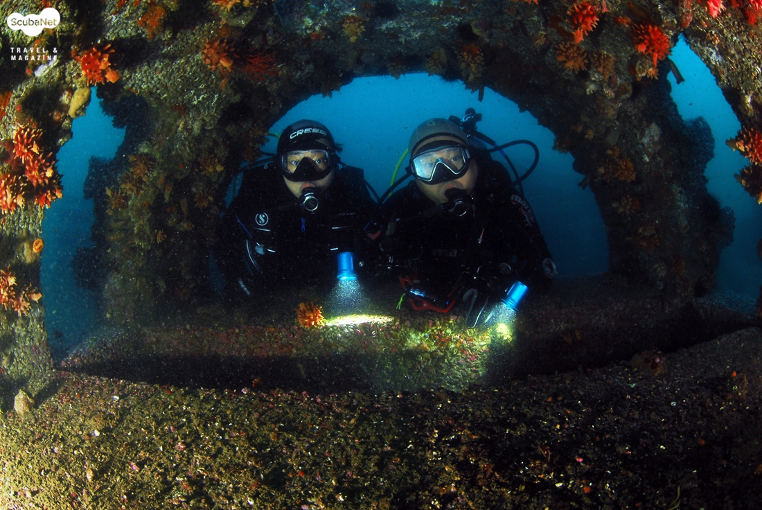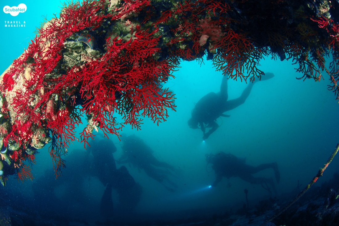 어초를 둘러보는 다이버들