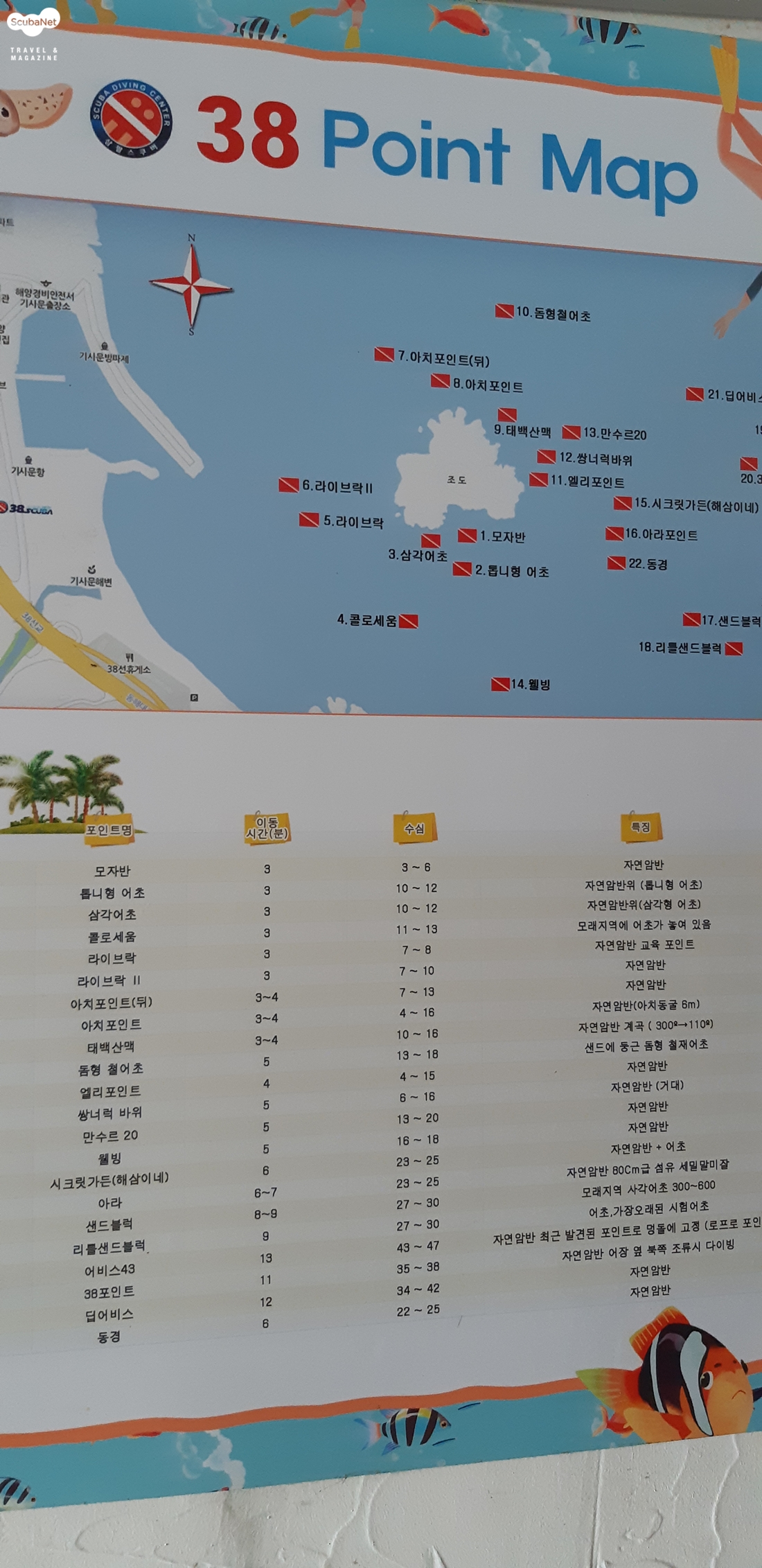 조도 인근의 다이빙 포인트와 이름