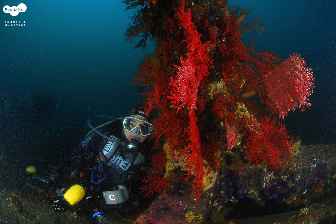 어초의 부채뿔산호와 다이버