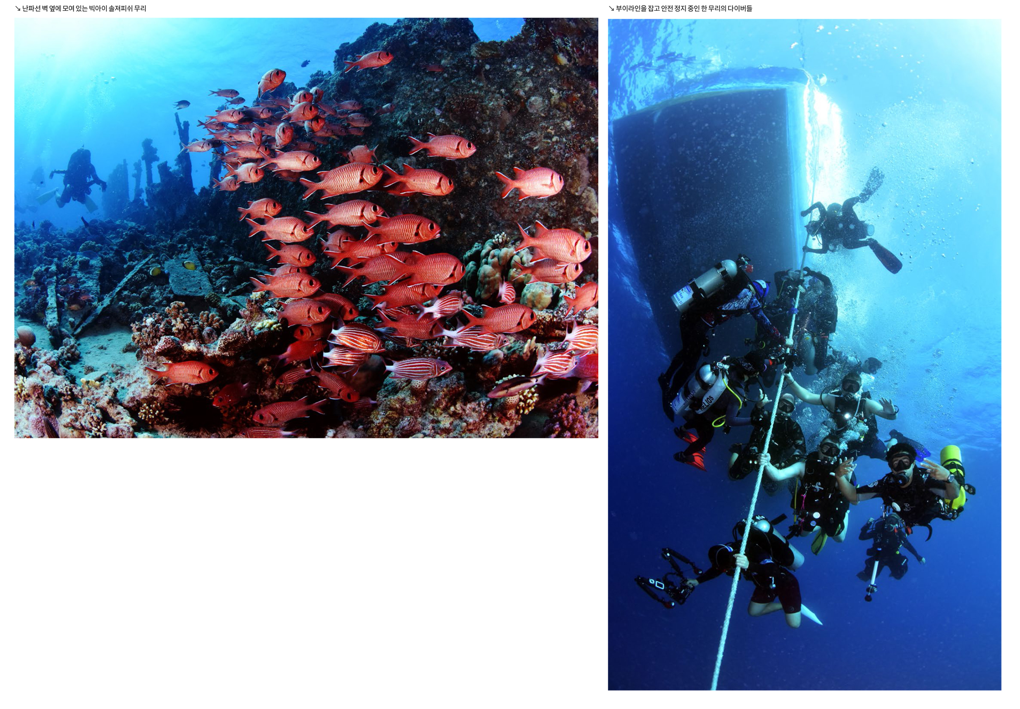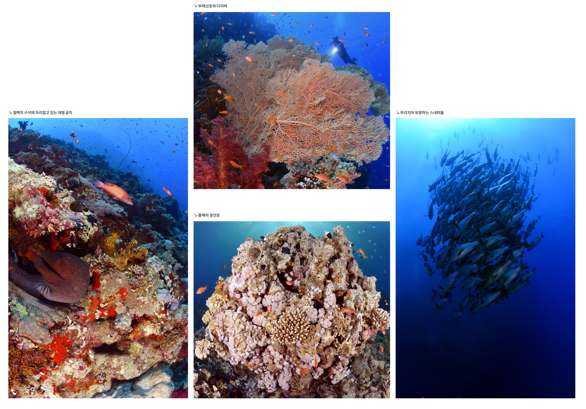 지난 8월 25일부터 9월 2일 7일간의 일정으로 이집트 홍해를 다녀왔다. 홍해 리브어보드의 대표적인 코스는 중부와 남부이지만 우리는 이번에 새로 취항한 레드씨 어그레서2가 운영하는 신규코스인 북부 트립을 선택했다. 신규코스는 정보가 많이 부족했지만 새로운 루트에 대한 기대감으로 선택하게 되었다. 북부코스를 대표하는 것은 난파선 다이빙이었는데 일부러 빠뜨린 듯 크고 작은 선박들이 한 곳에 모여 수중에 잠겨 있었다. 배 위에서 바라보니 수면 위로 크고 작은 암초들이 드러나 있었는데 이 지역의 뱃길에 익숙하지 않은 선박들이 좌초될 만하다는 생각이 들었다.