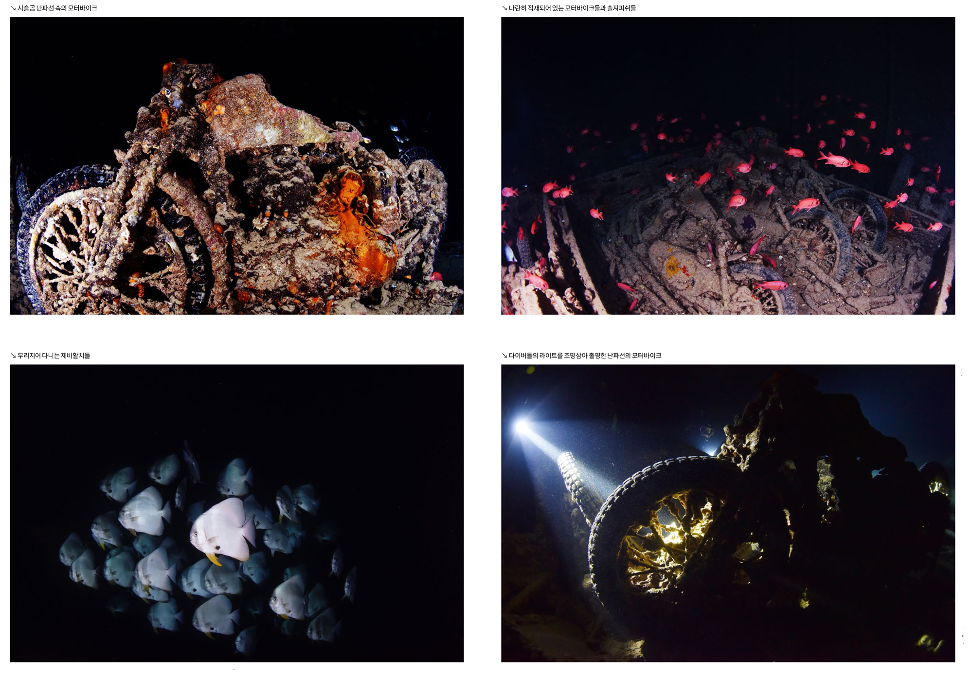 사실 이번 투어에서 가장 인상깊었던 기억은 시슬곰 SS Thistlegorm이라는 렉다이빙이었다. SS Thistlegorm은 2차 세계대전 때 침몰한 365마력의 증기엔진을 장착한 당시로서는 최신형 상선이다. 군수물자를 수송하는데 사용되었는데 1941년 영국군을 위해 스코틀랜드에서 이집트로 모터사이클, 트럭, 비행기부품, 군화 등의 군수물자를 싣고 항해하던 중에 독일 폭격기에 의해 격침된 것이다. 배는 수심 30m에 가라 앉아 있는데 조류가 조금 있는 편이라서 하강라인을 잡고 내려가야 했다. 선실 진입을 하게 되면 약 23m~26m, 15분~20분 다이빙을 해야 하기 때문에 각자의 무감압 한계 시간에 신경을 써서 다이빙을 해야 한다. 필자도 다이빙을 하다 보니 감압 다이빙을 할 수밖에 없었는데 이점에 유의하여 다이빙해야 할 것이다. 이곳에는 많은 모터사이클들과 트럭, 타이어, 포탄 등이 세월이 지난 지금도 형태를 거의 유지하고 있다는 점에서 매우 인상적이었다. 더블탱크 및 스테이지를 사용하며 계획된 감압 다이빙을 한다면 SS Thistlegorm의 구석구석을 보다 자세히 돌아볼 수 있을 것이다. 시슬곰 난파선은 충분히 그럴 만한 가치가 있는 곳이었다.