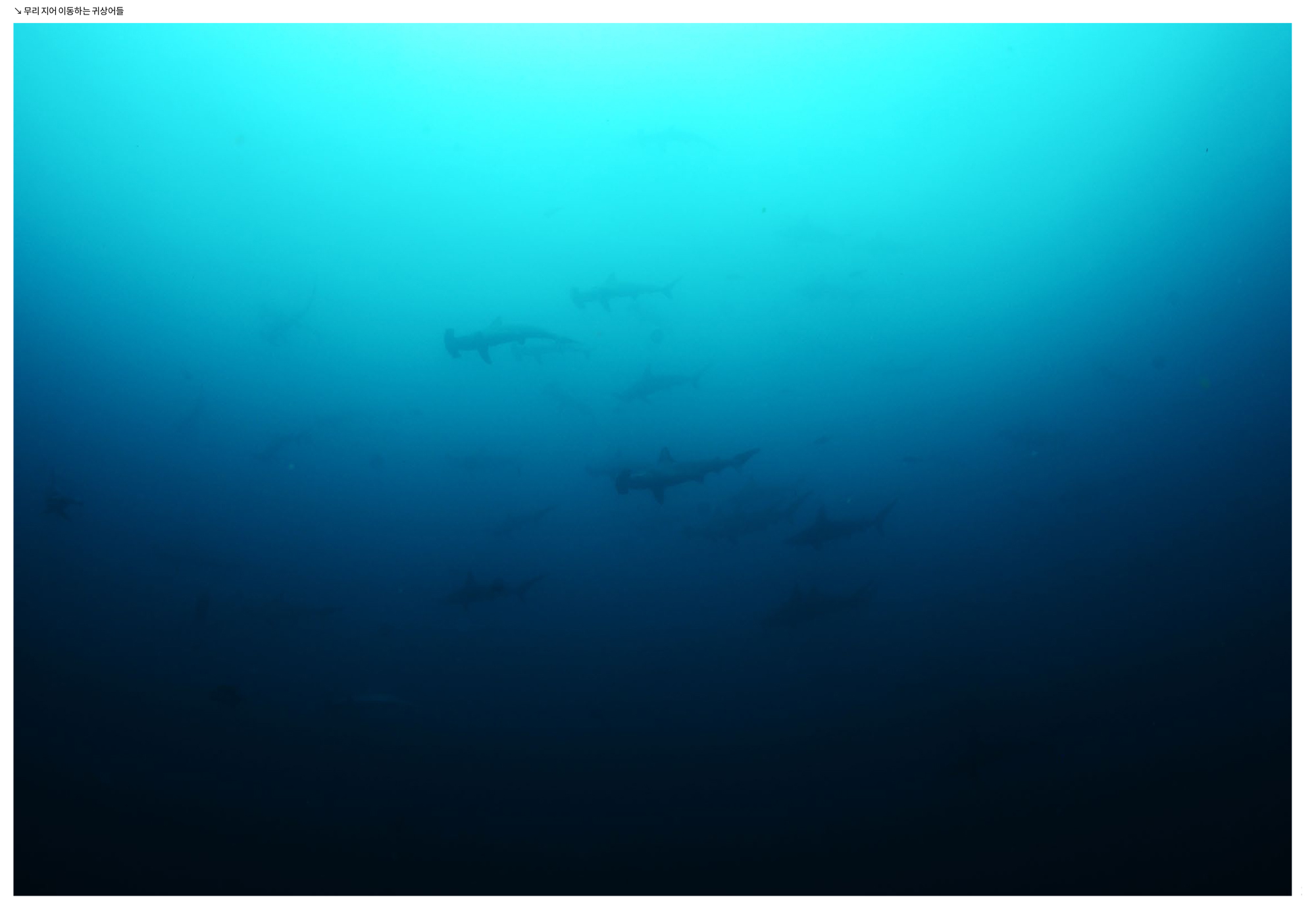 10박 11일 일정의 리브어보드 투어 중에서 7일간 하루에 3회씩 총 21회의 다이빙을 마치고 나니 코코스 섬이 세계적으로 손꼽히는 다이빙 포인트 일 수밖에 없는 이유를 알 듯했다. 사실 10년 가까이 기다렸던 투어이기에 코코스 섬의 다이빙에 대한 기대가 너무 높았던 탓에 계속해서 뭔가 더 나타나길 기다렸지만 실제 다이빙에서 직접 만났던 수중 환경만해도 대단한 것들이었다. 매 다이빙에서 귀상어를 보지 못한 적은 한번도 없었다. 때론 가까이 때론 멀리, 때론 맑은 시야에서, 때론 흐린 시야에서 귀상어가 한 마리, 두 마리, 세 마리, 네 마리 그리고 셀 수 없을 정도로 많이 나타났다.