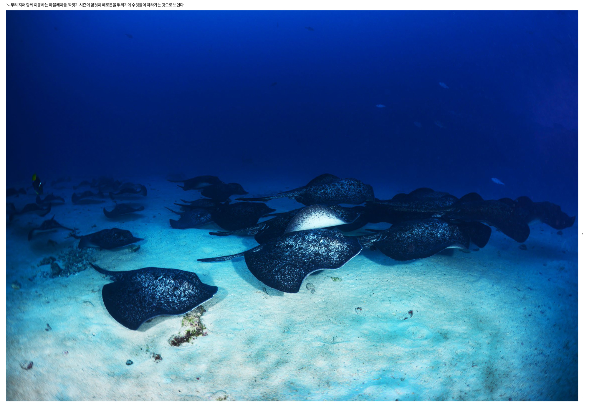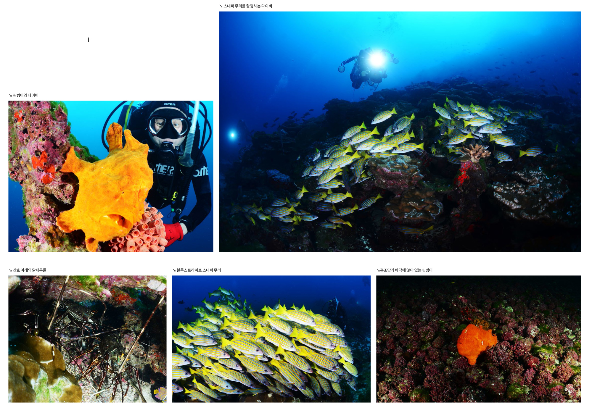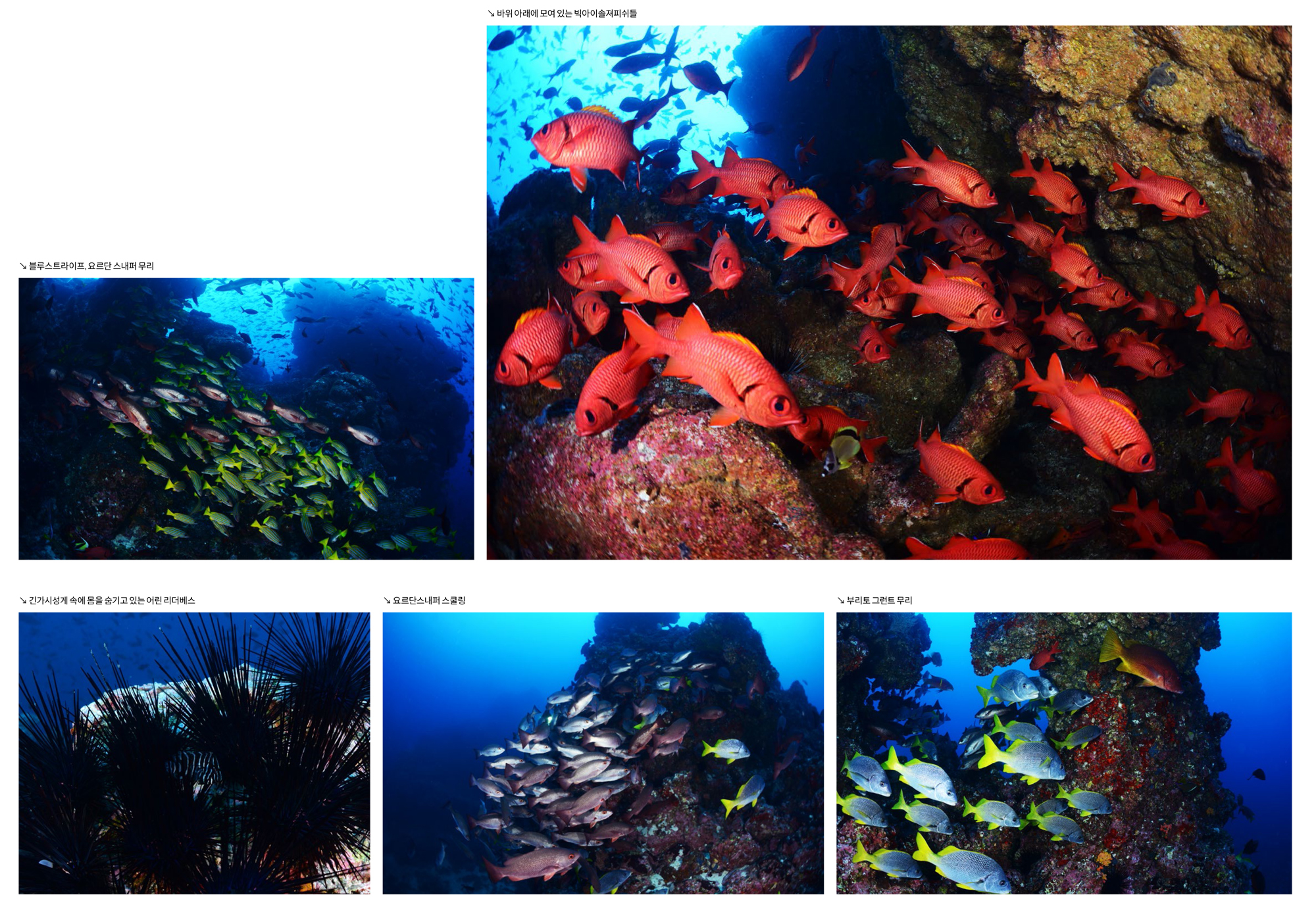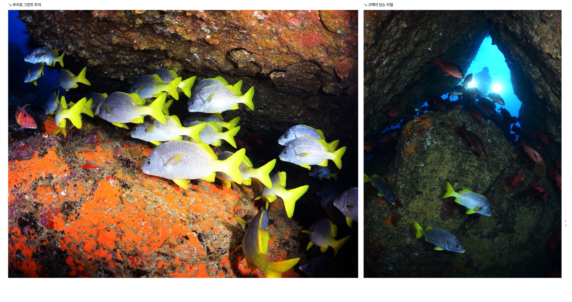 가까이 접근하는 귀상어와 멀리 무리지어 지나가는 귀상어들을 모두 구경하고 촬영할 수 있다. 이곳에서는 귀상어들 때문에 다른 것들은 거의 눈에 들어오지 않는데 마블레이와 백기흉상어들도 매우 많았고, 크레바스 속으로는 닭새우들이 여러 마리 겹쳐서 자리 잡고 있었다.