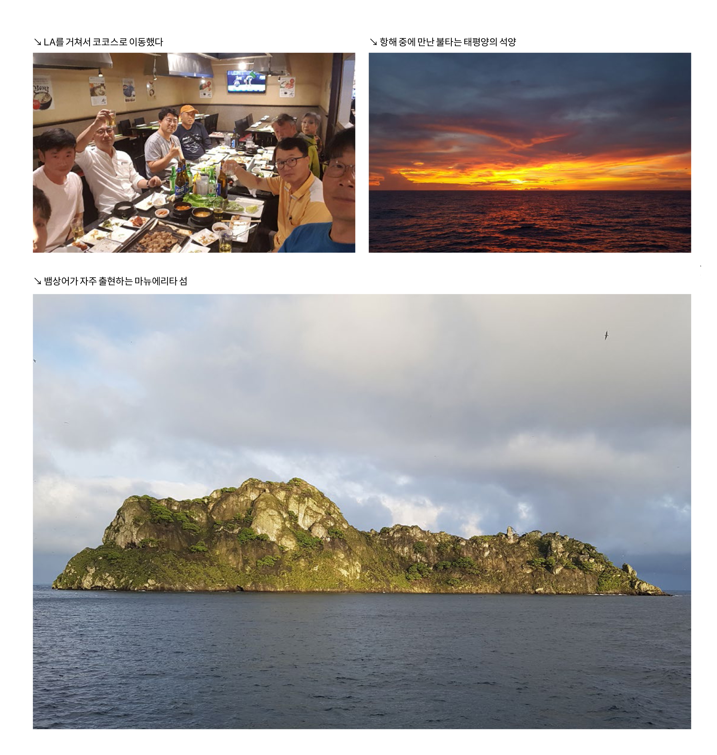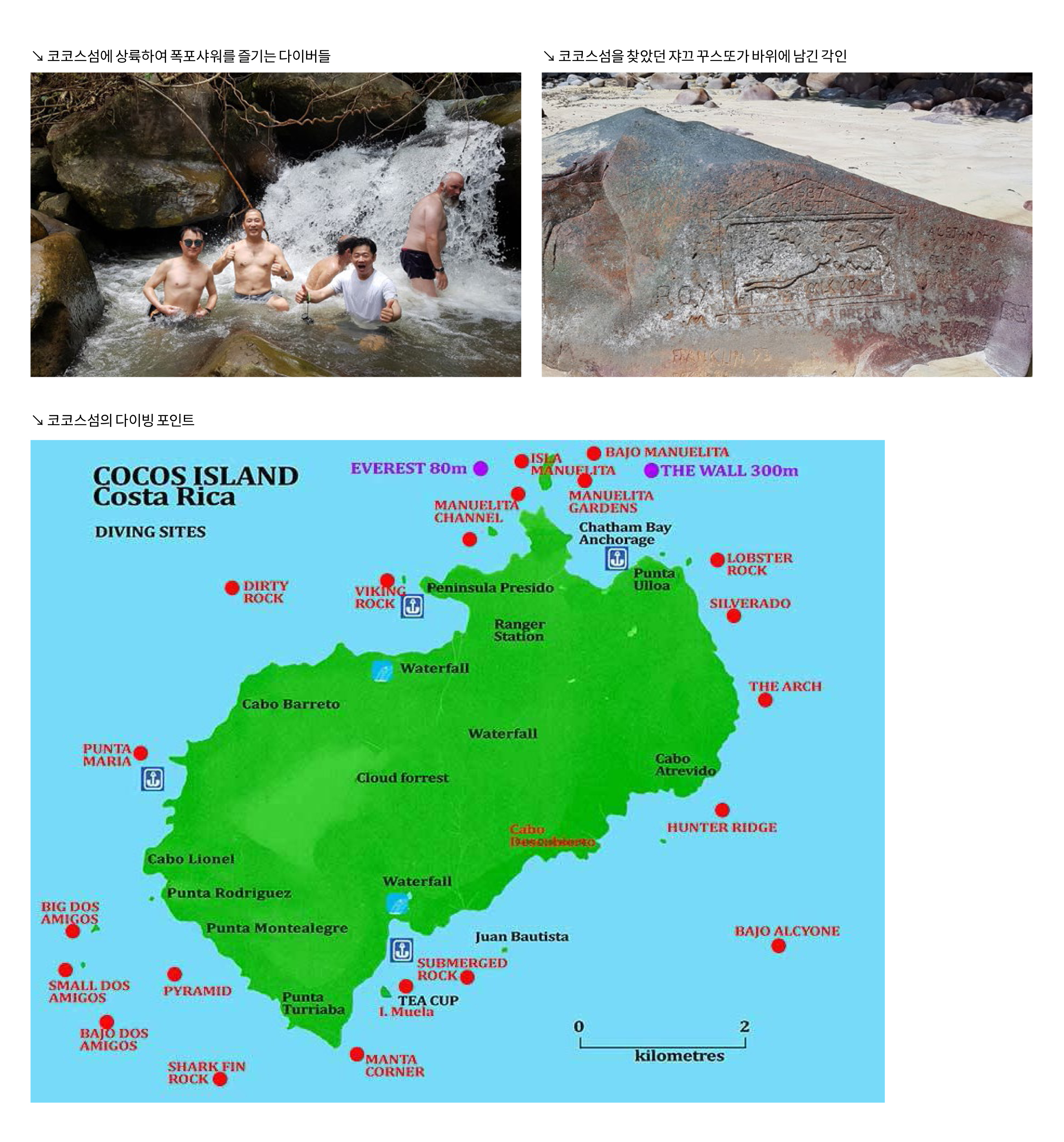 얼마나 기다렸던 코코스 다이빙인가? 36시간의 항해 끝에 도착한 코코스 섬의 캄캄한 새벽을 맞이하는 감동은 정말로 벅찼다. 갈라파고스 다이빙을 처음 다녀왔던 1997년 당시에도 귀상어 Hammerhead shark는 코코스가 더 많고 확실하게 볼 수 있는 곳이라는 이야기를 들었다. 그때부터 언젠가 코코스에서 다이빙하게 될 기회가 있을 것이란 희망을 갖고 있었다. 그리나 수년간 기획했던 2번의 시도가 실패한 끝에 마지막이라는 생각으로 2년 전에 50%나 되는 예약금을 무리하게 넣어 놓고 기다렸다. 양승철 원장의 지원과 굳은 의지가 아니었다면 이루어지지 못했을 투어였다. 이후 기꺼이 함께 동참해준 김웅, 김동식, 김기준, 김성범, 김기상 등 선후배 다이버들이 있어서 어려운 투어를 쉽게 만들어 주었다. 이들에게 감사한다.