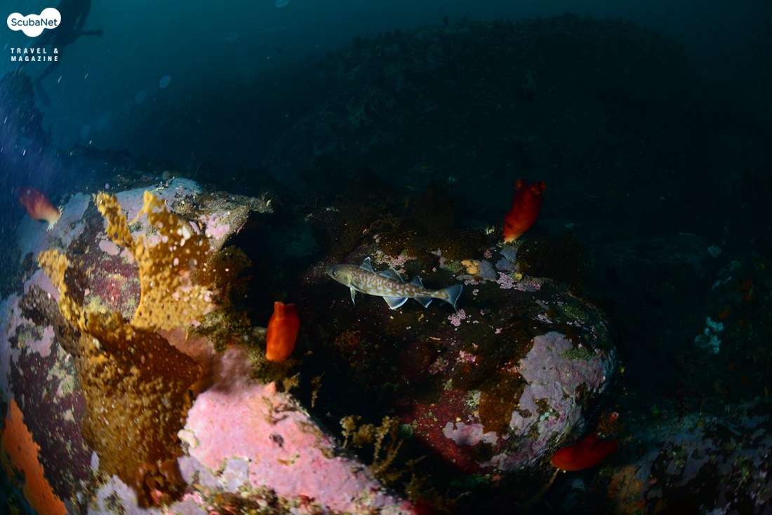 화려한 부채뿔산호 군락과 볼락 무리들을 보고 모델이 되어주는 이성호 트레이너 대구기사를 정리하기 위해 대구에 대해 알아보기 위해서 도감 ‘한국의바닷물고기(최윤)’를 찾아보니 우리나라에 출현하는 대구과 어류는 대구와 명태 그리고 빨간대구 3종이 있었다. 그 중에 빨간대구가 가장 적다고 해서 이번에 만난 그다지 커지 않은 대구의 크기 때문에 혹시라도 빨간대구가 아닐까 하여 도감을 찾아보았다. 피쉬베이스(