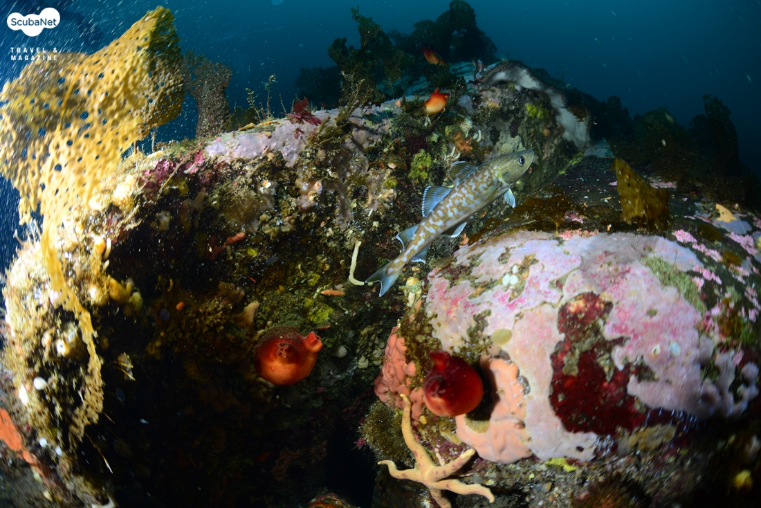 몸통의 얼룩무늬과 지느러미 가장자리의 흰띠가 선명하다또 한가지 아쉬웠던 것은 대구의 크기였다. 대구라고 하면 적어도 70~80cm 이상은 되어야 하는데 이날 촬영된 녀석들은 30cm 수준이었다. 큰 볼락이랑 거의 비슷한 크기였다. 겨울철에는 산란을 위해 들어오기 때문에 덩치가 큰 녀석들이 많은데 이번엔 작은 녀석들이 들어왔던 것이다.