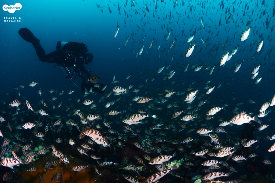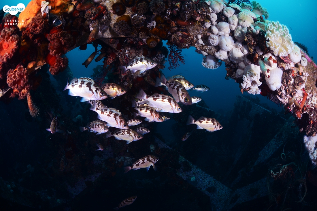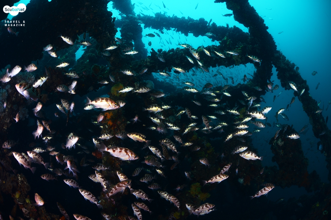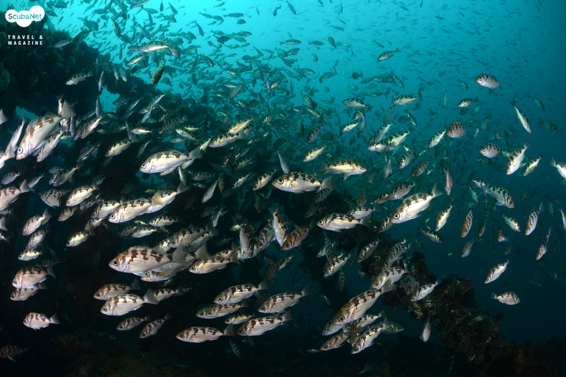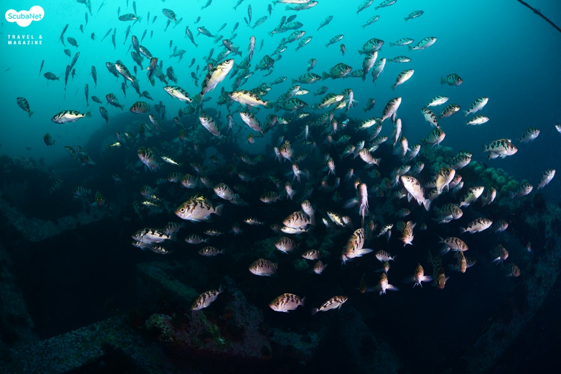 무리지어 있는 불볼락들이 마치 비처럼 내리는 듯하다
