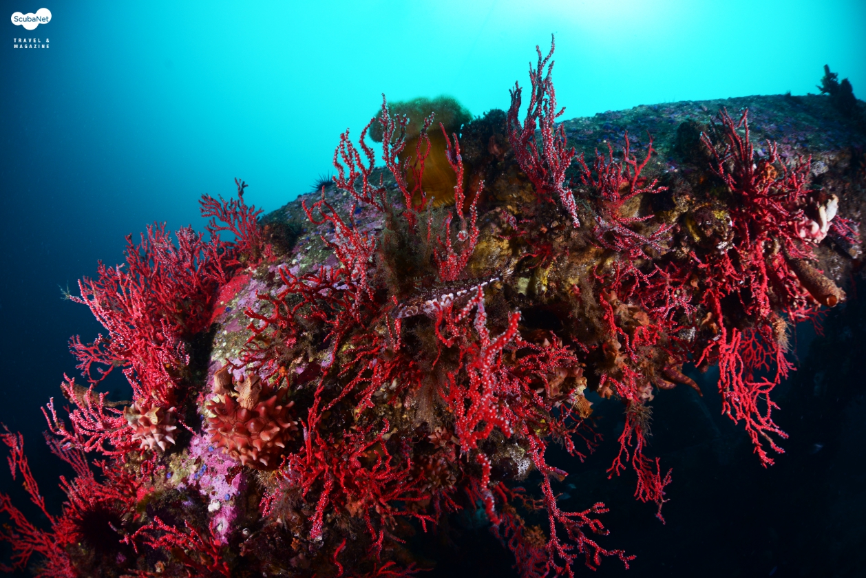 어초에 부착된 부채뿔산호 때문에 홍산호라는 포인트 이름이 붙어 있다