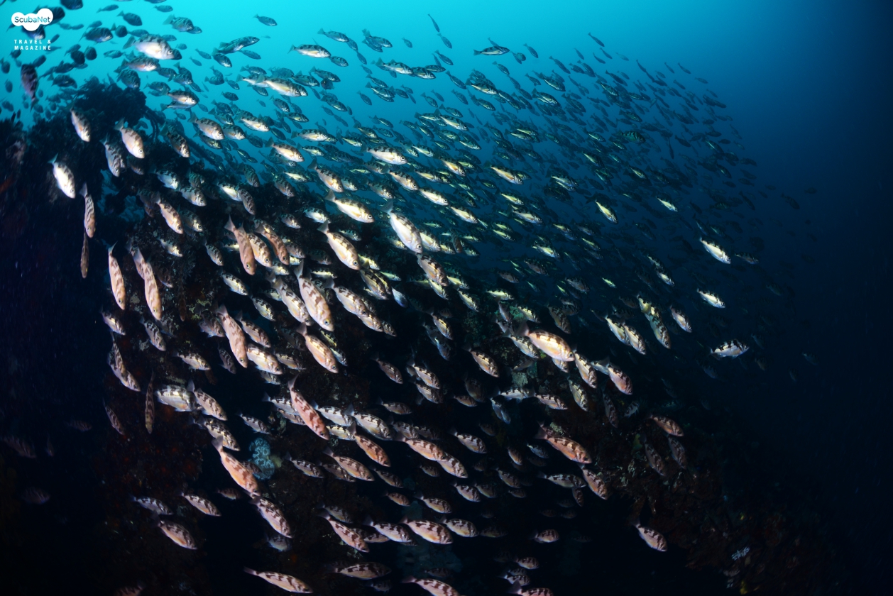 홍산호 포인트의 사각어초 위에 자리잡고 있는 불볼락 무리