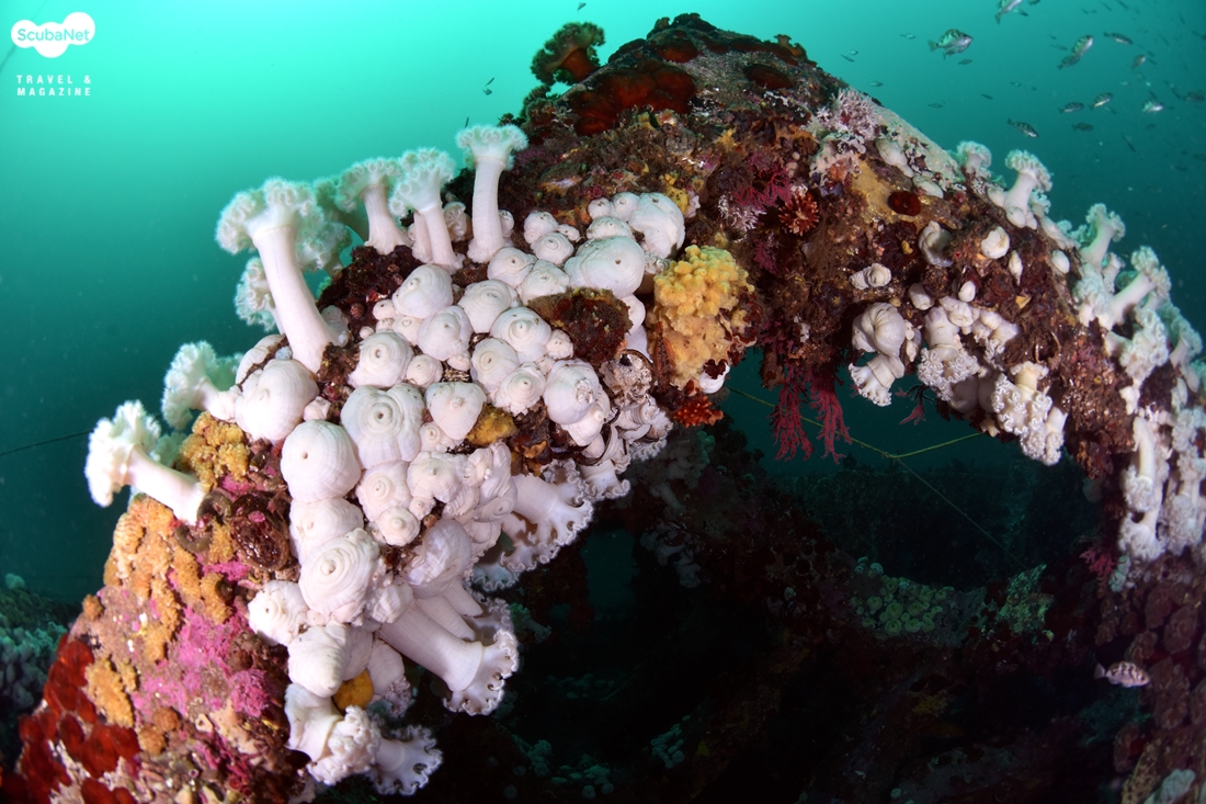 수심 35미터 리틀샌드블럭 포인트 마지막 포인트는 상급 다이버들이 많이 찾는 곳으로 안내를 부탁드렸고, 장기영 대표의 1:1 가이드를 받으며 리틀샌드블럭에 들어 갔다. 최대 바닥수심 35m인 이 포인트는 역시 딥 다이빙답게 차가운 수온이 가장 먼저 필자를 맞이하였고, 얕은 곳들과 다르게 10m 이상의 시야가 반겨주었다. 샌드블럭들이 쌓여져 있는 이곳은 버블탱크리조트의 대표 포인트로서 블럭 곳곳마다 말미잘, 산호, 비단멍게, 쥐노래미, 우럭 등 수많은 어종과 공존해 있었다. 안전을 위한 무감압 한계시간의 준수로 인하여 오랜 시간 다이빙을 못하고 아쉬운 마음으로 상승해야 했다. 육지로 돌아가는 배 위에서 다음 방문 시에는 리틀샌드블럭 포인트를 완전히 돌아볼 수 있도록 하자는 약속을 하고 이번 투어를 종료했다.