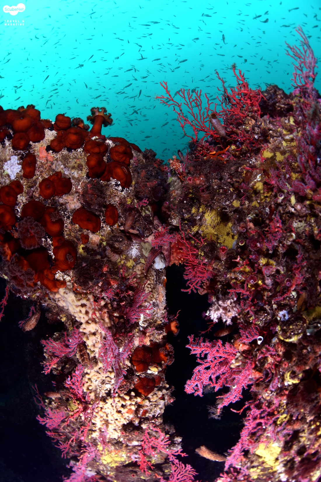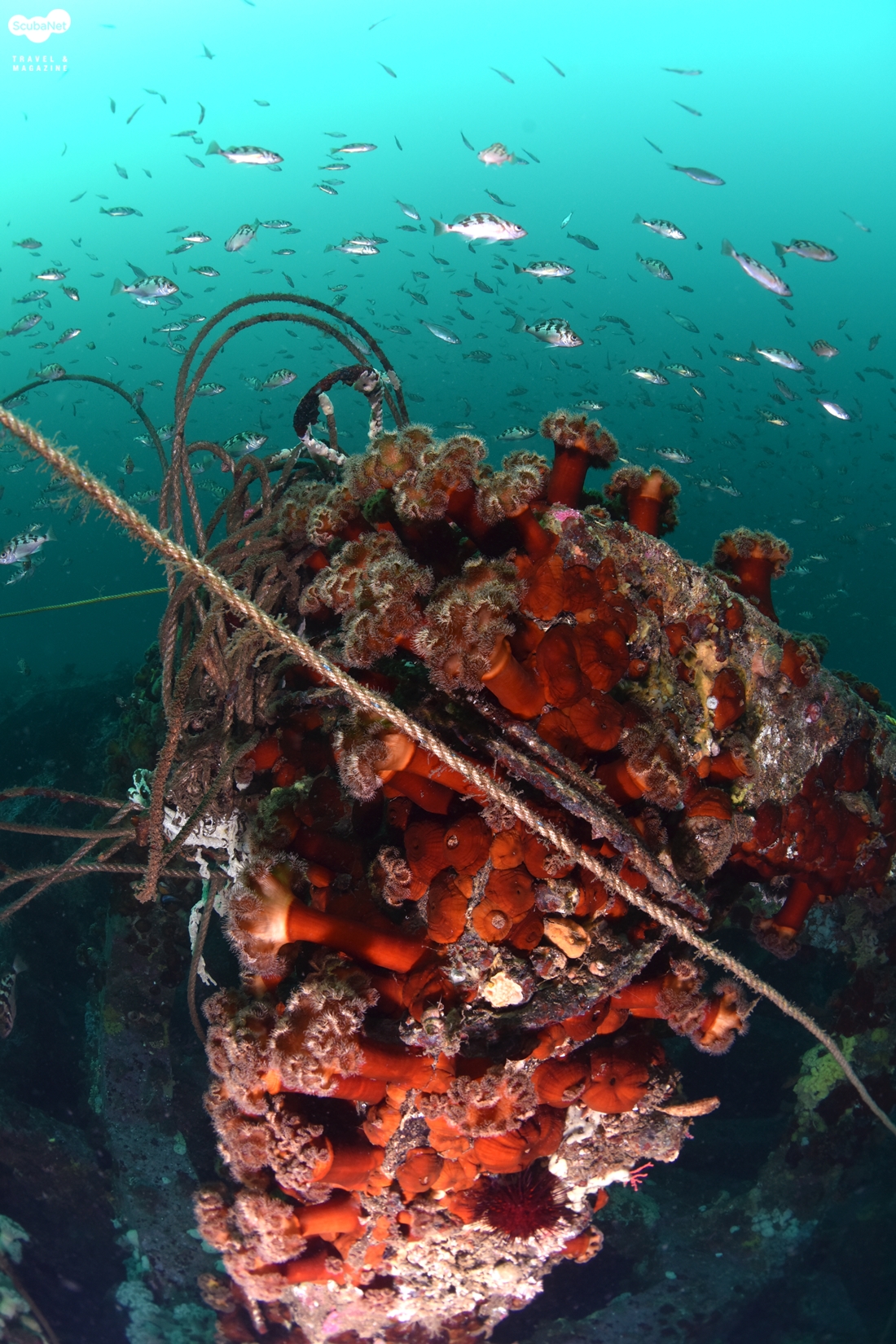 두 번째 포인트는 역시나 오픈워터 교육생과 어드밴스 다이버들의 동행으로 초급다이버의 제한수심 18m를 넘지 않는 아치포인트에서 진행하게 되었다. 이곳의 지형도 자연암반으로 이루어져 바위에 자리잡은 비단멍게, 산호 등을 관찰할 수 있었고, 그곳을 중심으로 다양한 어종이 관찰되었다. 특이한 점은 짧지만 아치(터널)가 있어 다이버가 한 명씩 지나갈 수 있었다.