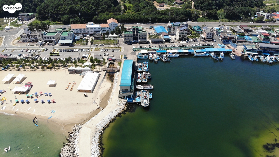 어초와 하강라인 이번 추석연휴를 맞이하여 필자는 해외와 같은 수중 시야를 보겠다는 의지로 양양에 위치한 버블탱크 다이빙리조트를 찾았다. 수중촬영장비와 스쿠버장비를 트렁크에 적재하고 새벽이슬을 맞으며 출발했다. 서울에서 약 2시간이면 도착할 수 있는 버블탱크 리조트는 2명의 공동 대표와 스태프 강사가 함께 운영 중이다. 리조트는 바다 바로 앞에 있으며 다이버가 휴식을 할 수 있는 썬 베드와 테이블이 있고, 부엌과 강의실, 샤워용품과 수건이 빼곡하게 들어가 있는 샤워장, 화장실이 있다. 사장님께서 다이버를 위해 불편함을 끼지 못할 정도로 작은 곳 하나 하나 신경을 정말 많이 쓴 느낌을 느낄 수 있었다.
