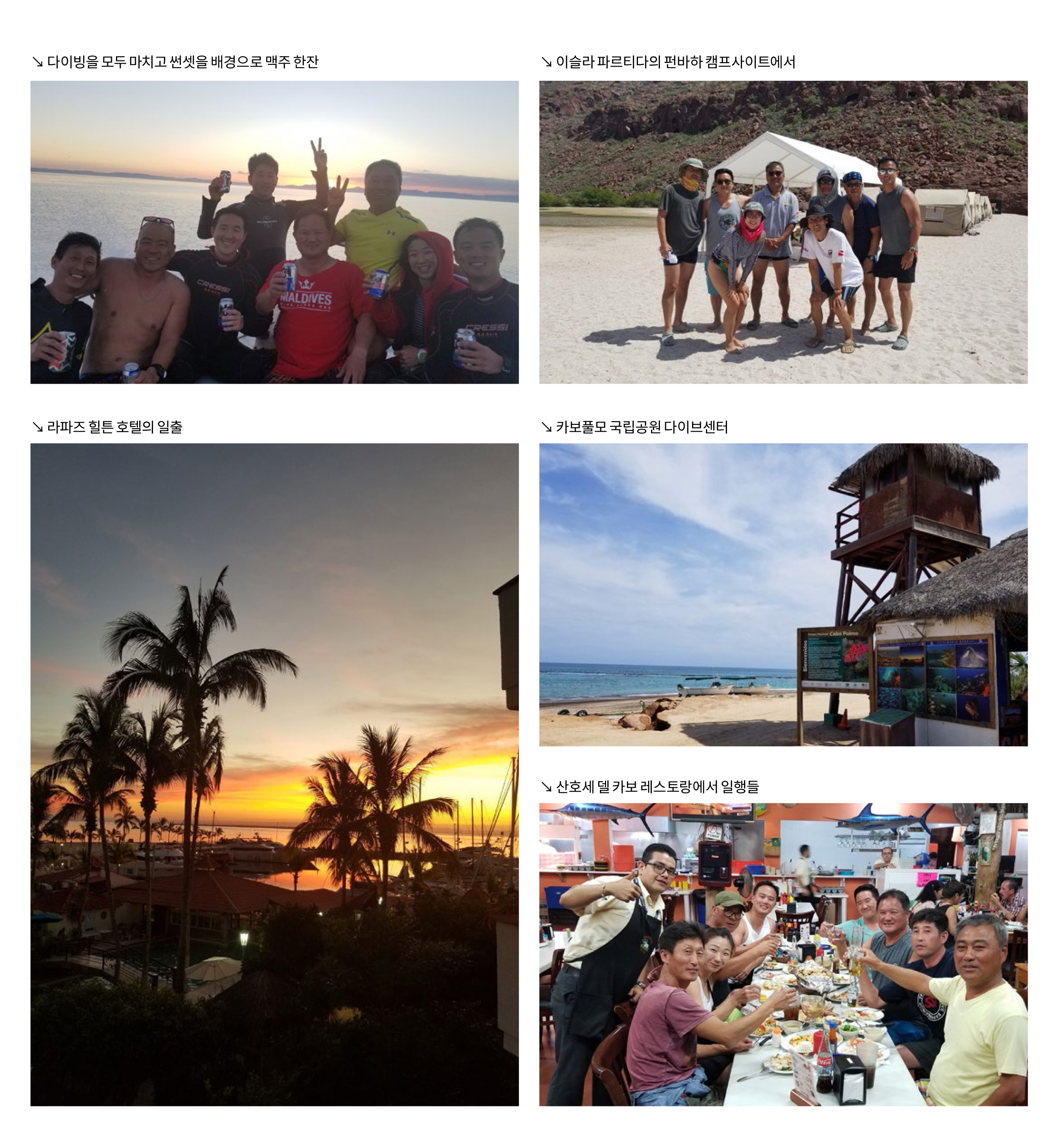 그리고 2019년 추석 라파즈 캠핑 프로그램도 만들었다. 스쿠버넷에서는 2박 3일 캠핑과 더불어 카보풀모 다이빙을 이틀간 진행하여 전체 8박 9일의 일정이 되도록 만들었다. 한국에서 토요일 출발하여 다음주 일요일 귀국 가능한 일정이다. 2개의 프로그램으로 9월 7일~15일, 9월 28일~10월 6일 일정으로 계획되어 있다. 문의는 스쿠버넷으로 해도 되고, 필자에게 직접 해도 된다.