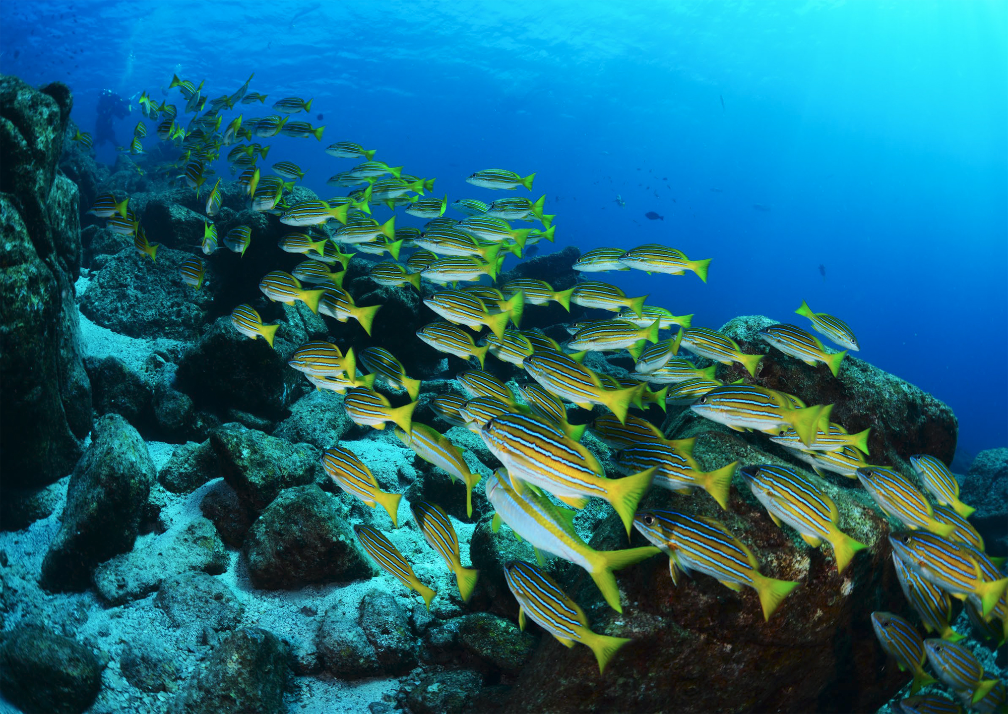 이슬라 로보스 수중의 블루스트라이프 스내퍼 무리