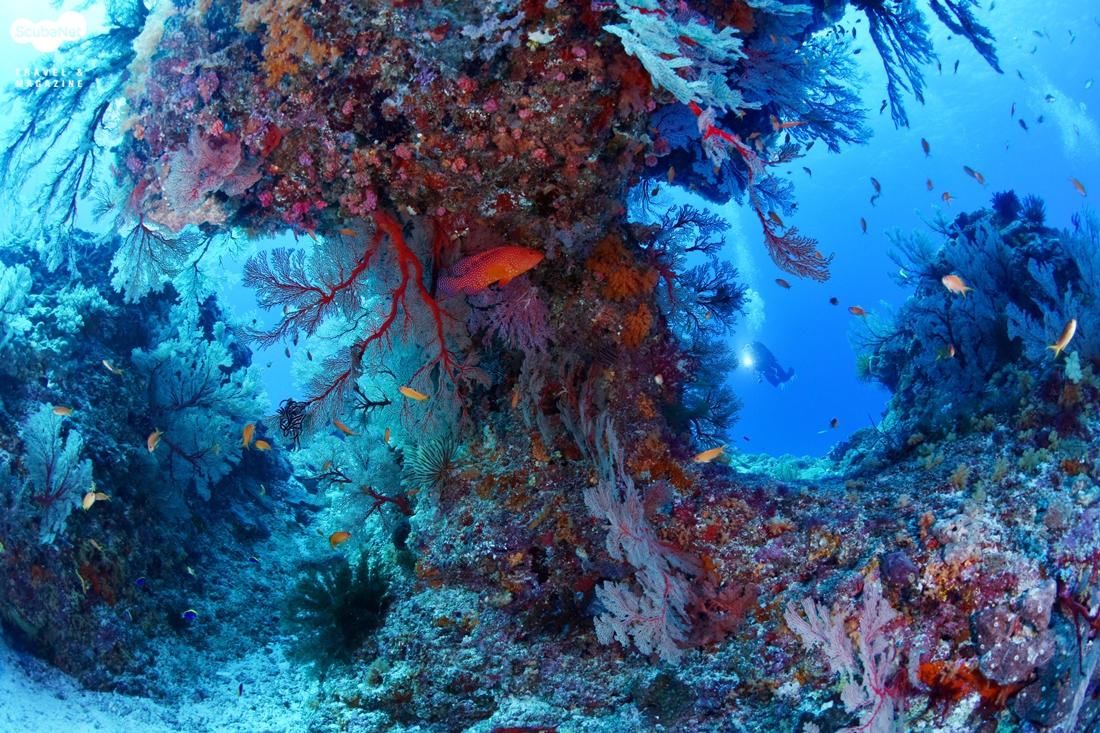 햇빛에 반짝이는 산호들과 그 속에서 함께 공존하는 아열대 어류들의 군무는 다이버들에게 기쁨을 주었다. 특히나 새빨간 부채산호에 모여 있는 글라스피쉬와 그것을 사냥중인 그루퍼는 필자를 한자리에 오랜 시간 머물게 하였다. 웅장한 암초와 사람이 일부러 만든 듯한 협곡은 감탄을 자아냈고, 캐이브 포인트에서는 뚫린 천장으로 내려오는 푸른 빛을 감상하며 다이버의 실루엣을 촬영하기에 안성맞춤이었다.