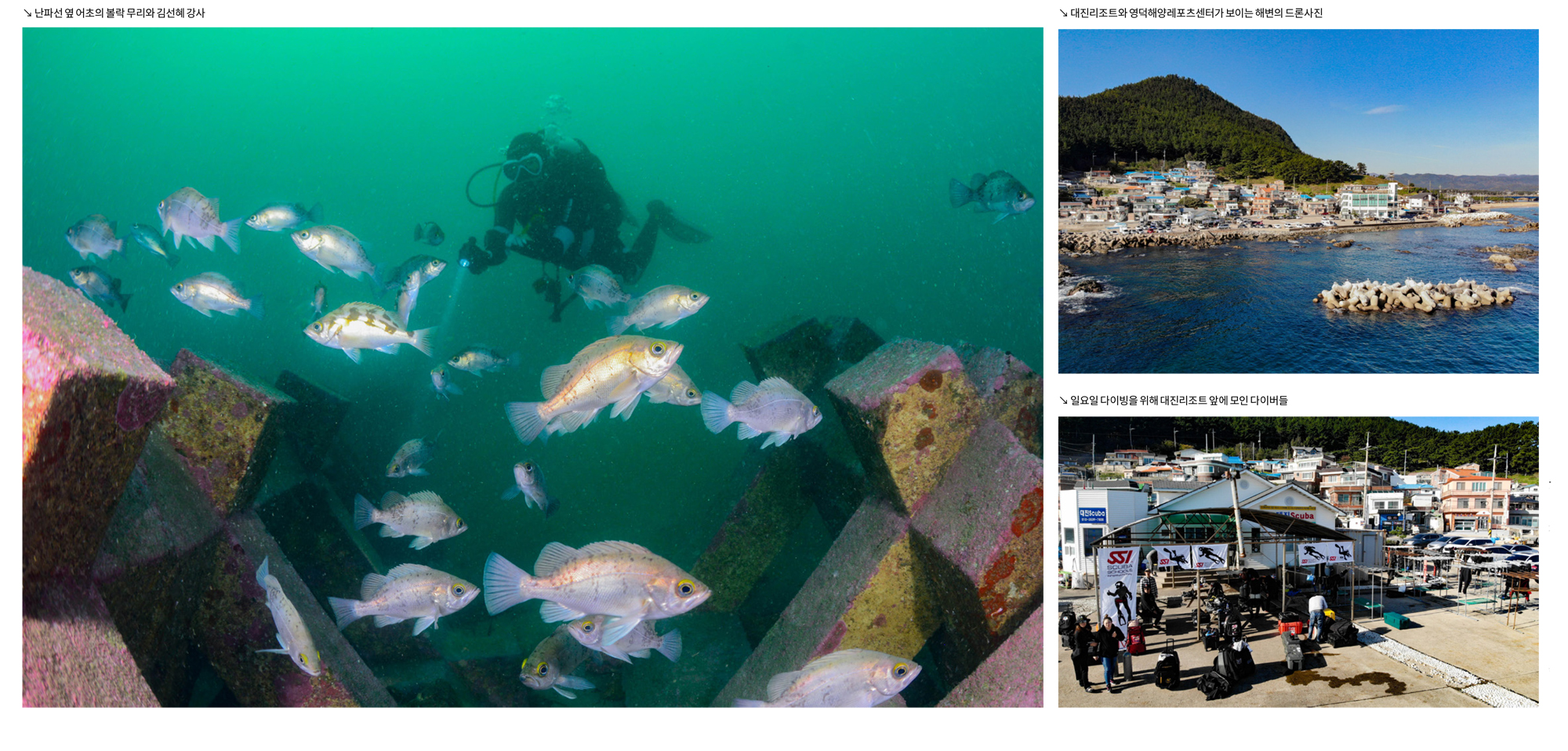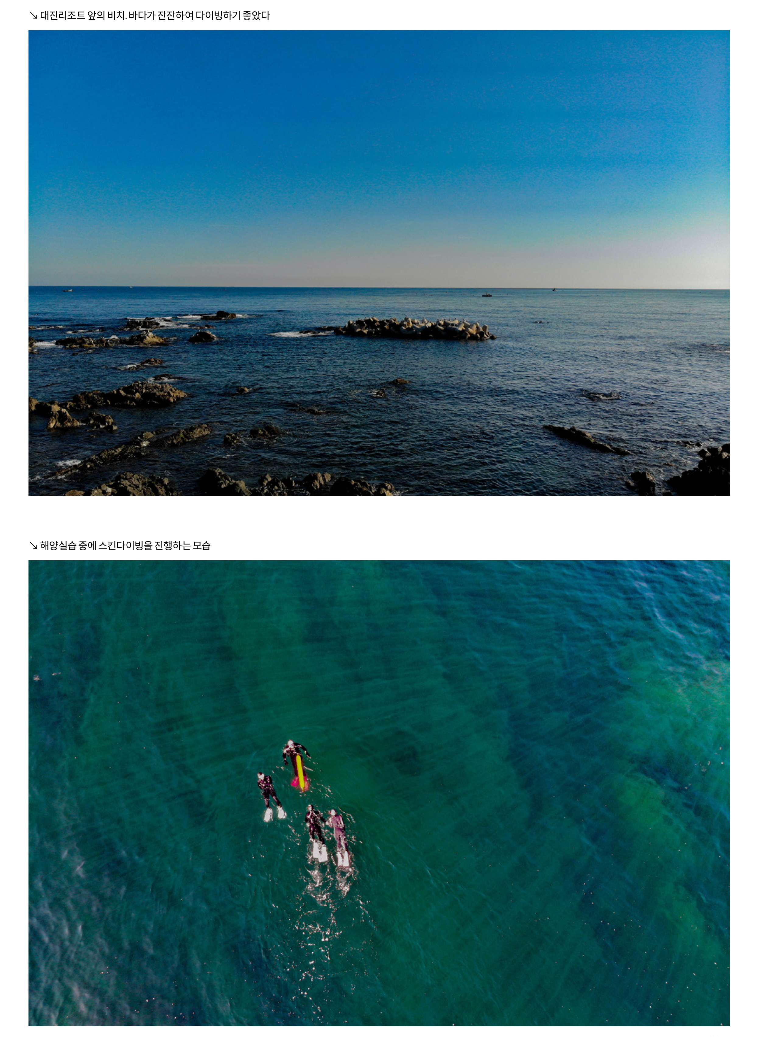 오랜만에 영덕 대진리조트에서 다이빙을 하며 오랜 인연의 다이버들과 반갑게 재회하기도 했고, 얼굴만 알고 지냈던 사람들과 정식으로 인사를 나눌 기회도 가졌다. 역시 다이버들은 다이빙 현장에서 만나야 화기가 돈다. 이런 기회들이 생기면 무조건 쫓아가야 겠다는 생각을 하며 뿌듯한 마음으로 돌아올 수 있었다.