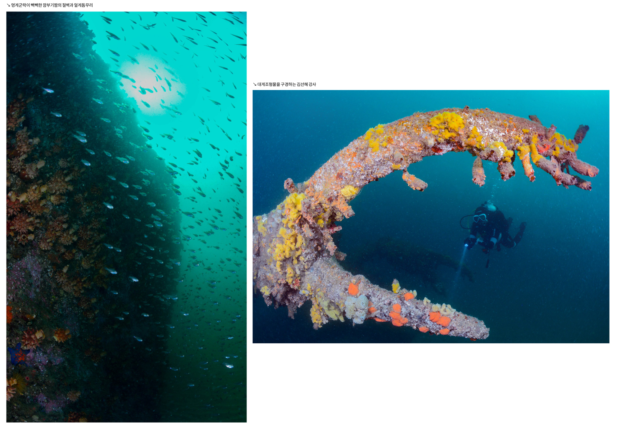 수심 28m 바닥에 있는 난파선에서 입수하였다. 선수쪽에서 입수하여 선미로 돌아가는데 조류를 받는 선미 쪽에 볼락들과 얼게돔 무리가 가득했다. 선미 근처의 어초에도 볼락들이 많았다. 조금 떨어진 곳에 대게 상이 2개가 있었는데 하나는 무너져 있었고, 하나는 제 모습을 유지하고 있었다. 다만 시야가 예상보다 흐려서 대게 상의 전체 모습을 뚜렷하게 남기지는 못했다. 수심이 깊어서 20분 정도 다이빙을 하고 천천히 상승하였다.