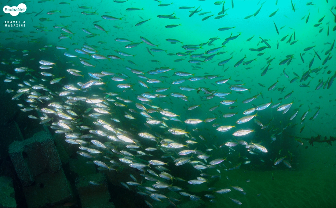 깜부기짬에 있는 어초에 모여든 어린 전갱이들