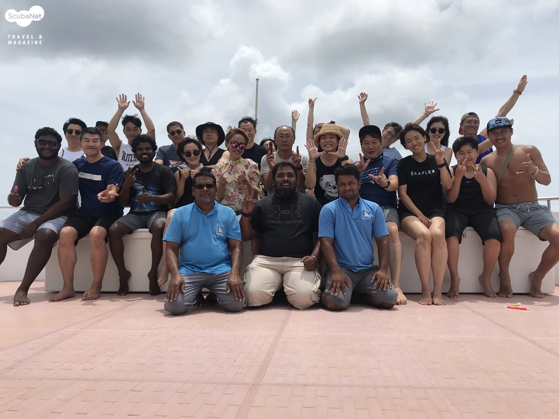 최근에 다녀온 다이버들의 선상 단체 사진보통의 리브어보드 보트들이 딥사우스 트립이라고 하면 말레에서 출발하여 라아무 Laamu나 후바두 Huvadhoo까지 남쪽으로 내려가면서 다이빙을 하게 되는 노선과 아예 남쪽의 후바두에서 승선하여 남쪽에서만 다이빙하고 다시 후바두에서 하선하는 노선 그리고 후바두에서 승선하여 중부로 올라오면서 다이빙을 하고 말레에서 하는 하는 노선이 있다. 대부분의 배들이 몰디브 베스트만 운영하며, 딥사우스를 시도하는 업체들도 3월 정도에 내려갔다 올라오는 것으로 3회 정도 시도하고 말며, 아두 아톨이나 푸바물라 오톨까지는 내려가지 않는 경우도 많다.