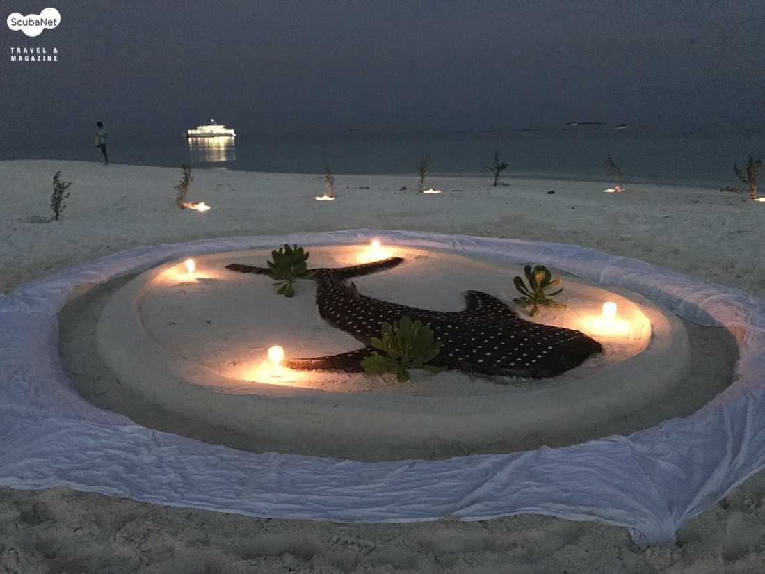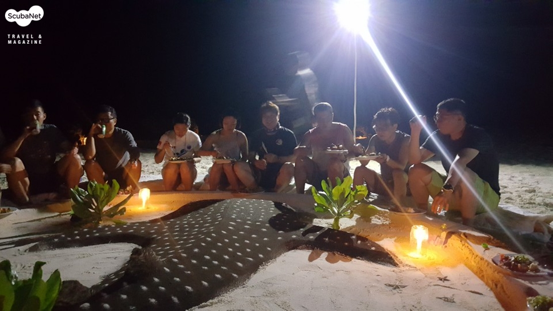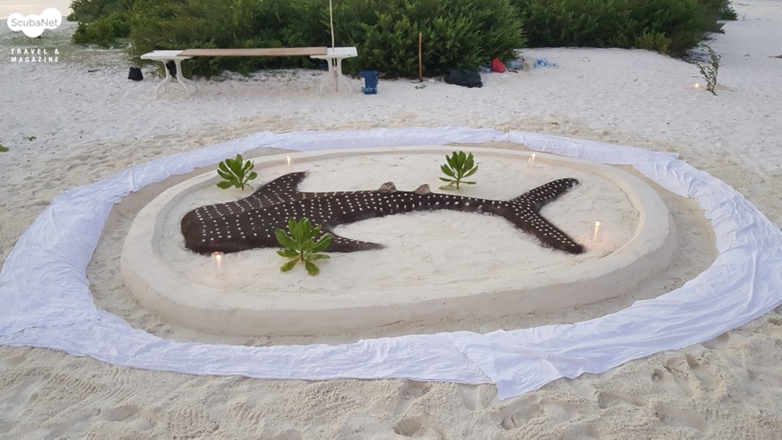일정 중 준비한 피크닉 바비큐 파티의 임시 테이블은 고래상어로 장식되었다