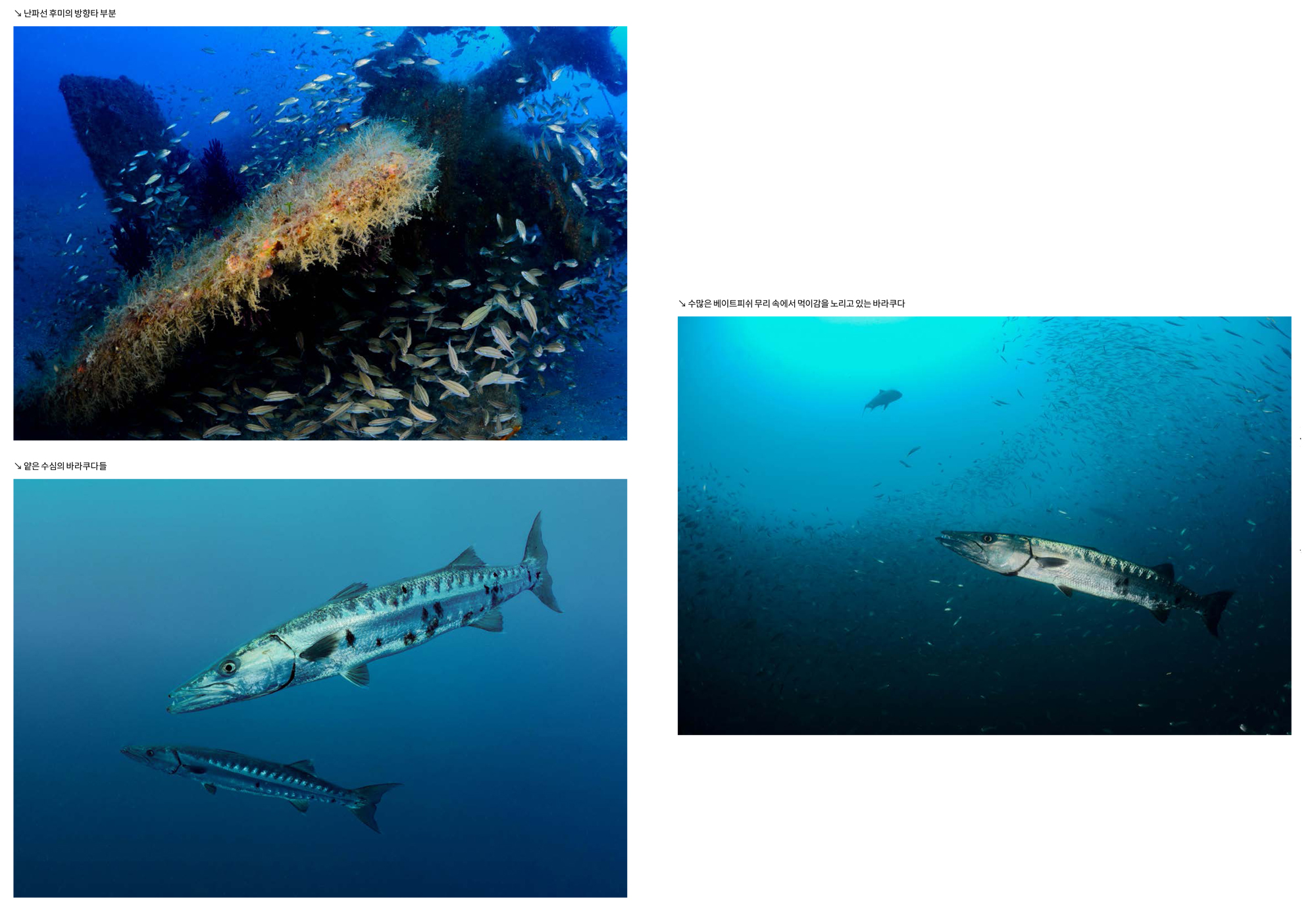 위치가 연안에 가깝기에 파도가 있어서 먼 바다로 나가기 어려울 때 활용하는 다이빙 포인트이다. 종종 외해의 포인트들에 시야가 안 좋은 경우에 이곳을 찾으면 의외로 시야가 좋은 경우가 있는데 이 지역의 지리적 특징으로 인해 바람과 조류로 인해 먼 바다가 오히려 북쪽의 연안해류의 영향을 받을 때에는 외해에서 연안 쪽으로 흐르는 반대방향의 해류로 인해 맑은 물이 들어온다고 한다. 실제로 U-352와 Aeolus의 시야가 급변했을 때 이곳을 찾았더니 의외로 시야가 좋아서 놀랐다.
