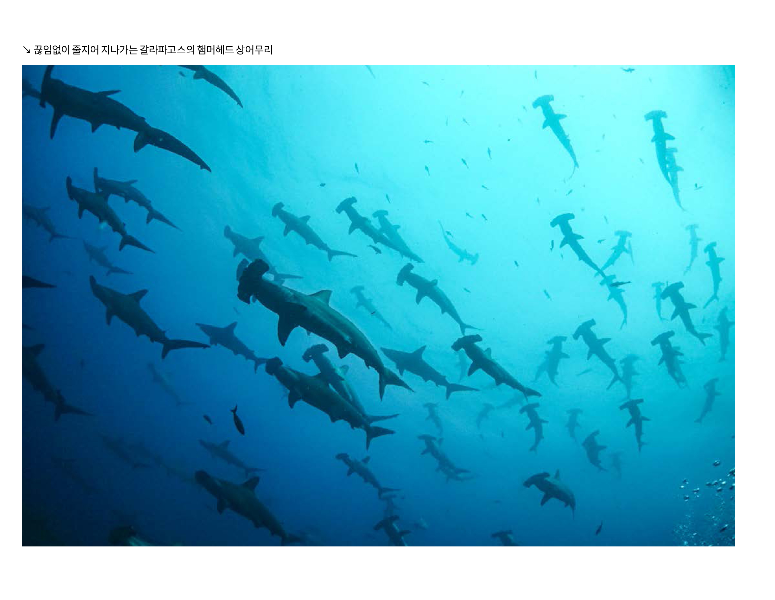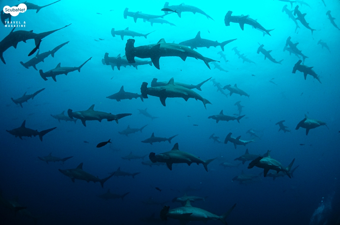 갈라파고스 햄머헤드 상어 무리에서 만난 햄머헤드 상어 무리