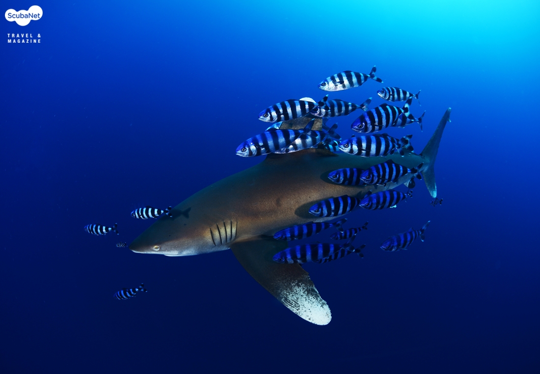 큰지느러미흉상어가 다이버 근처로 오는 것은 공격할 것인지 살펴보는 것이다.