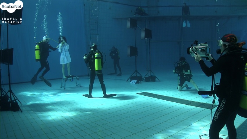 무대가 설치되고 나서 예비 촬영을 통해 조명 배치를 최종 결정하고 난 후, 모델을 대상으로 한 촬영을 통해 카메라의 최종 노출값을 결정했습니다. 이때 동원된 스틸 카메라는 제가 담당을 했고, 비디오는 수중촬영 전문가인 고태식 감독과 “생활의 달인” 촬영팀, 리쿰스쿠버 소속 김성욱 강사 등이 담당해 주었습니다.