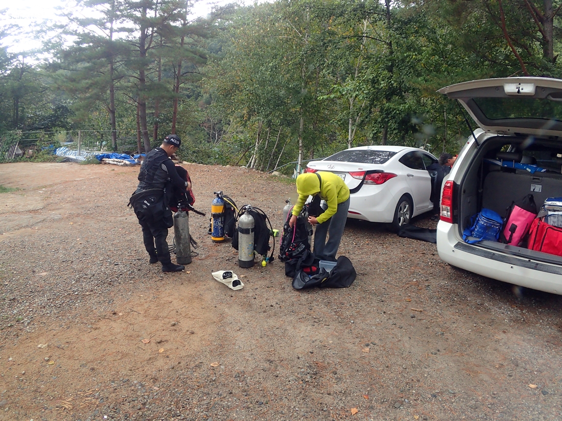 백담계곡 주차장에서 다이빙 준비 모습