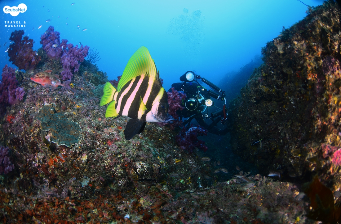 숲섬 깊은 수심의 산호 군락다음 다이빙으로 들어간 숲섬은 수온이 오른 탓에 아열대성 어류들이 많이 눈에 띄었다. 육동가리돔도 보였고, 말미잘에 공생하는 흰동가리돔들 그리고 청줄돔도 쌍으로 다니고 있었다. 오랜만에 개운하고 활기찬 다이빙을 즐길 수 있었다.